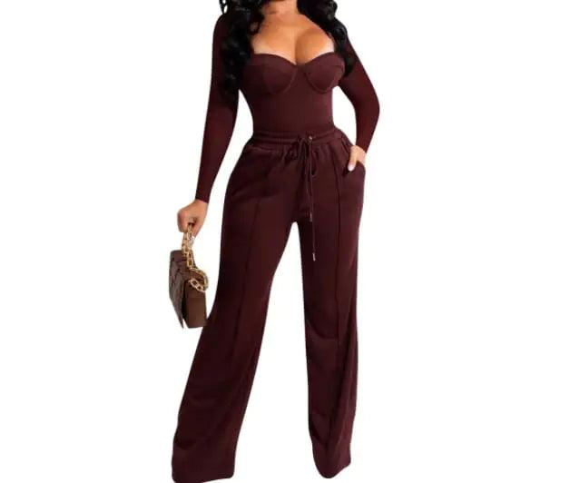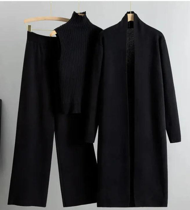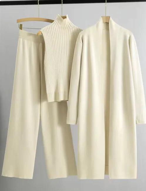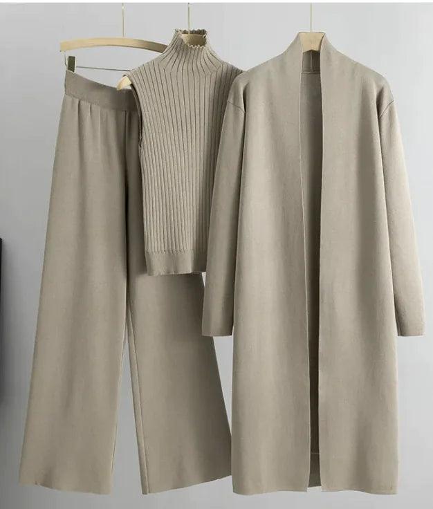 3pcs Suits Women Fashion Knitting Sleeveless Vest Sweater Long Cardigan And Wide-leg Pants