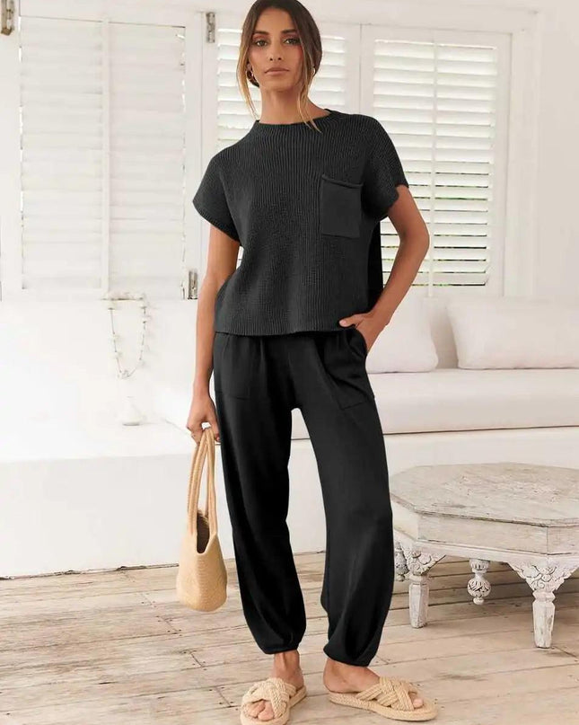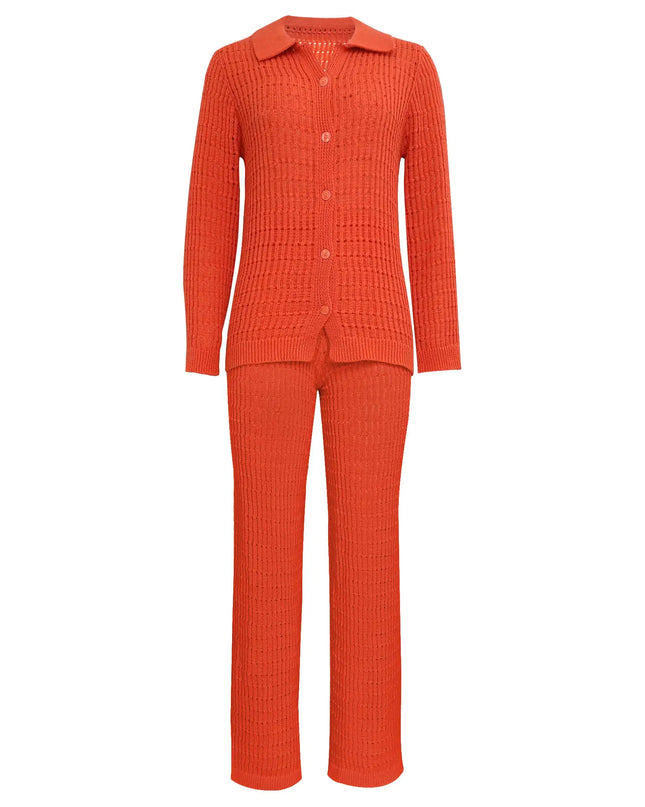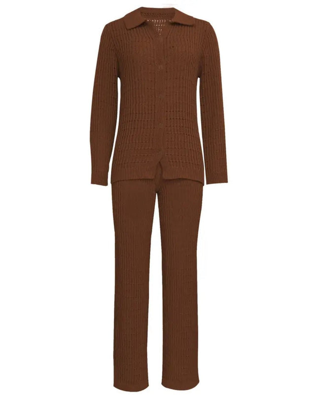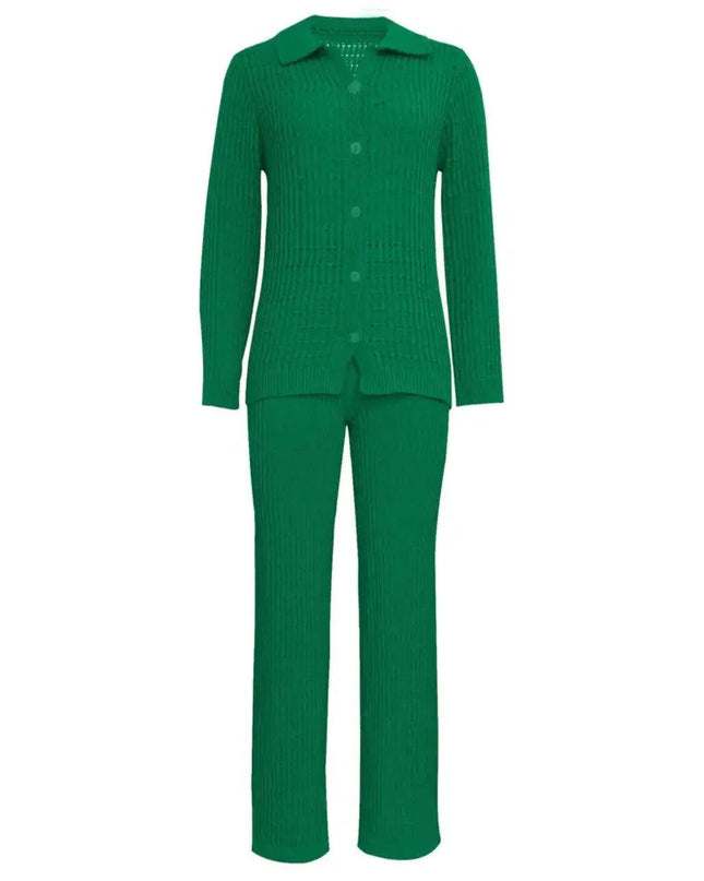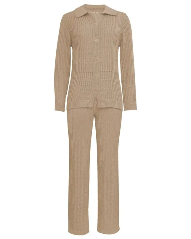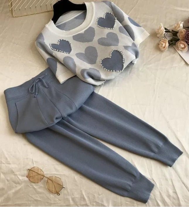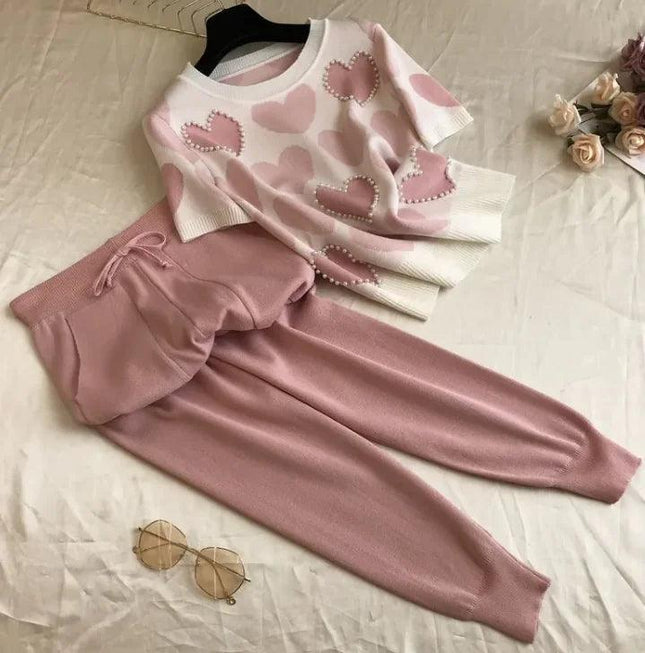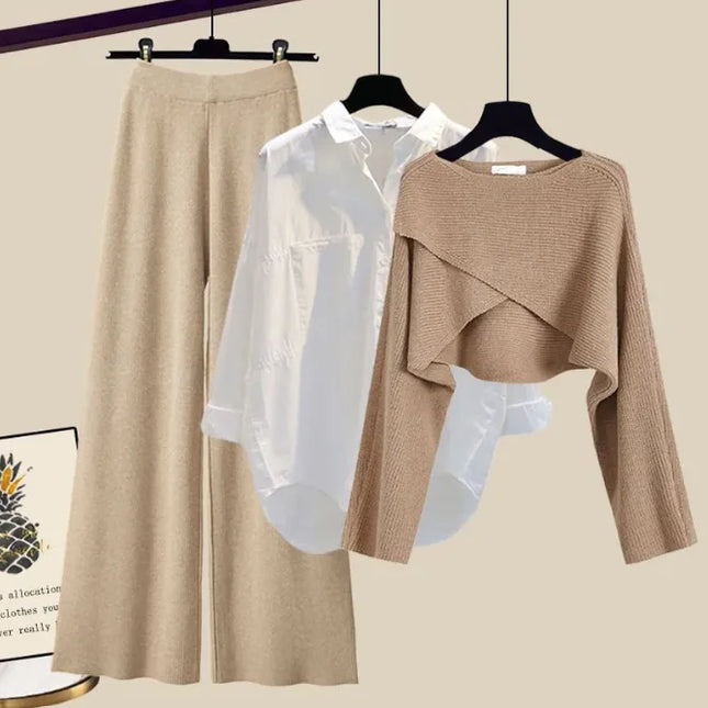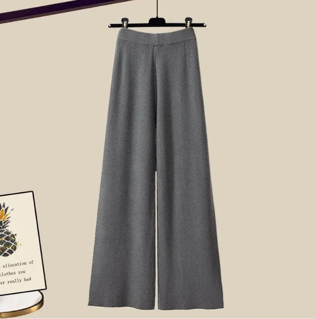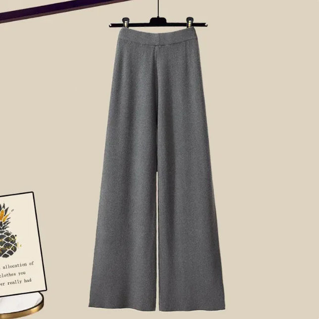 3pcs Knitted Sweater & Wide-Leg Pants Set