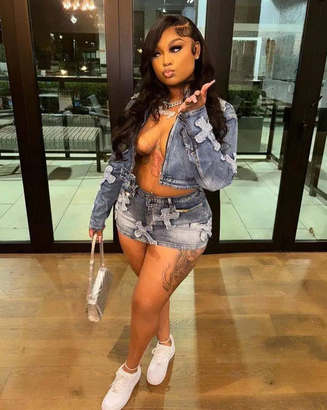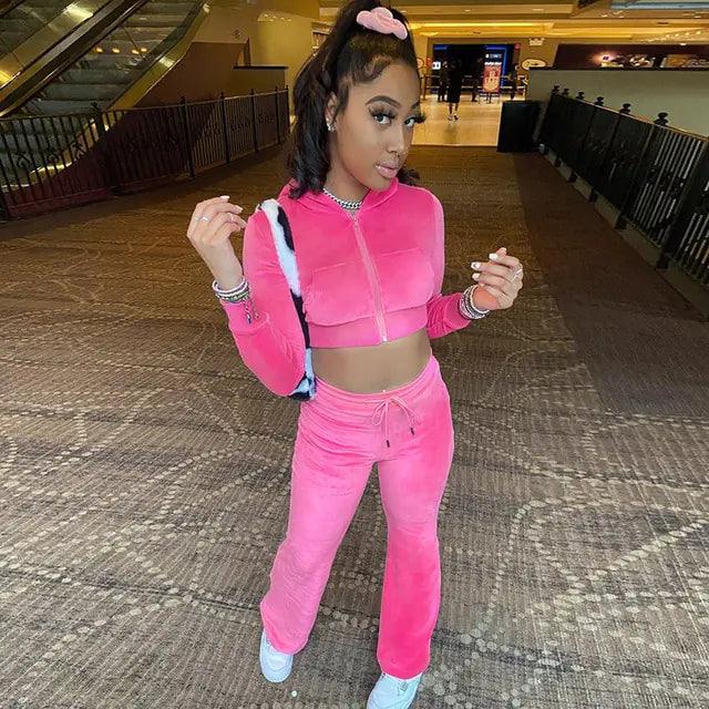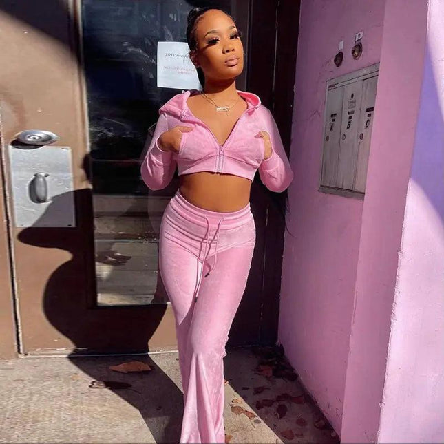 Hollow Sexy Slim Velvet Lace Two-Piece Suit