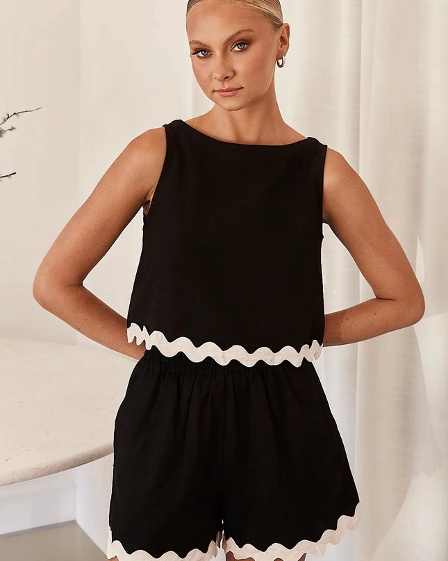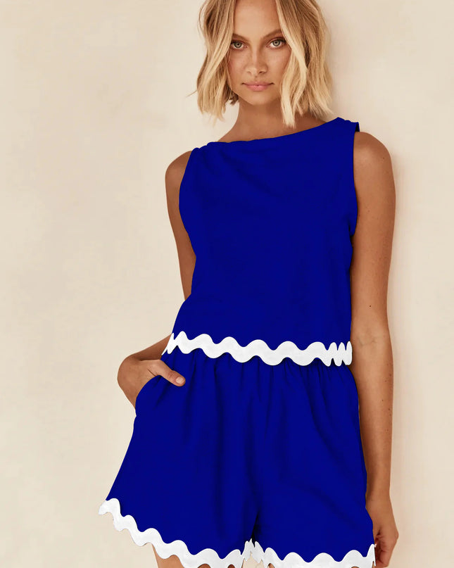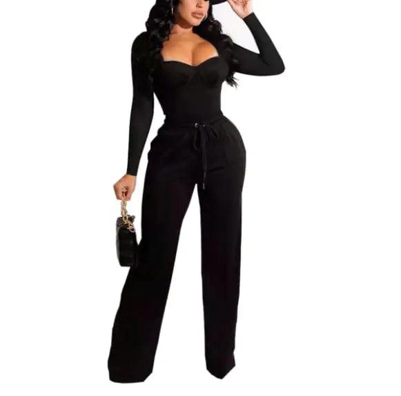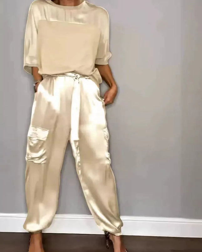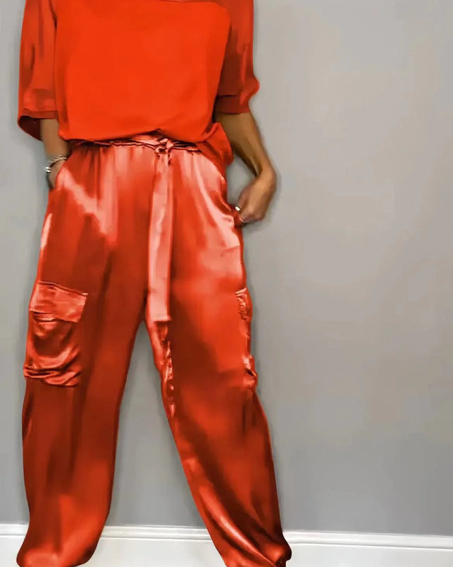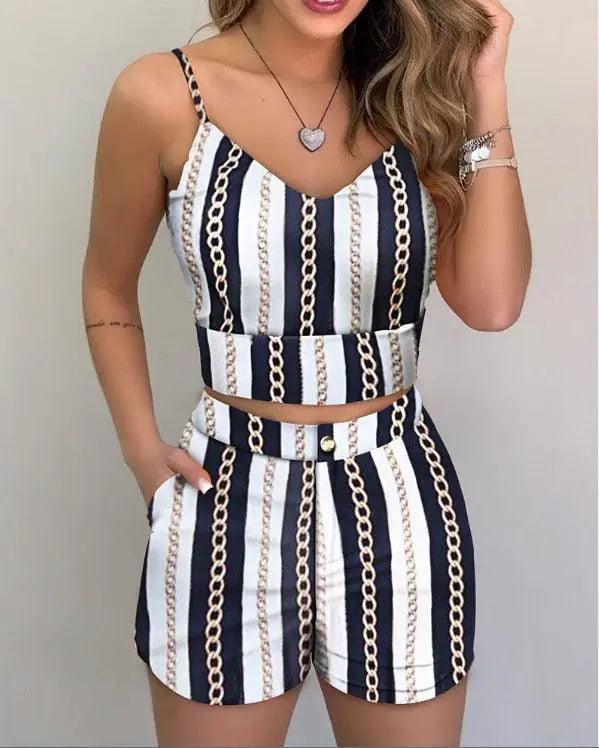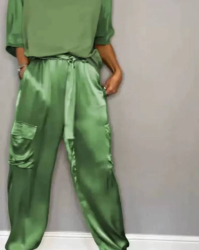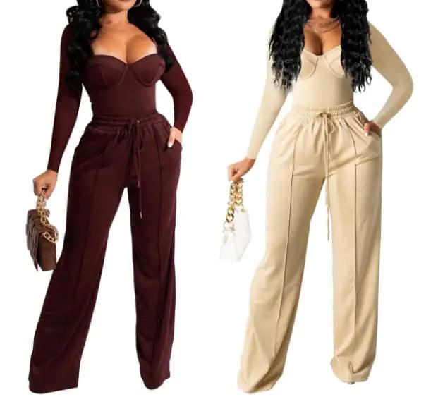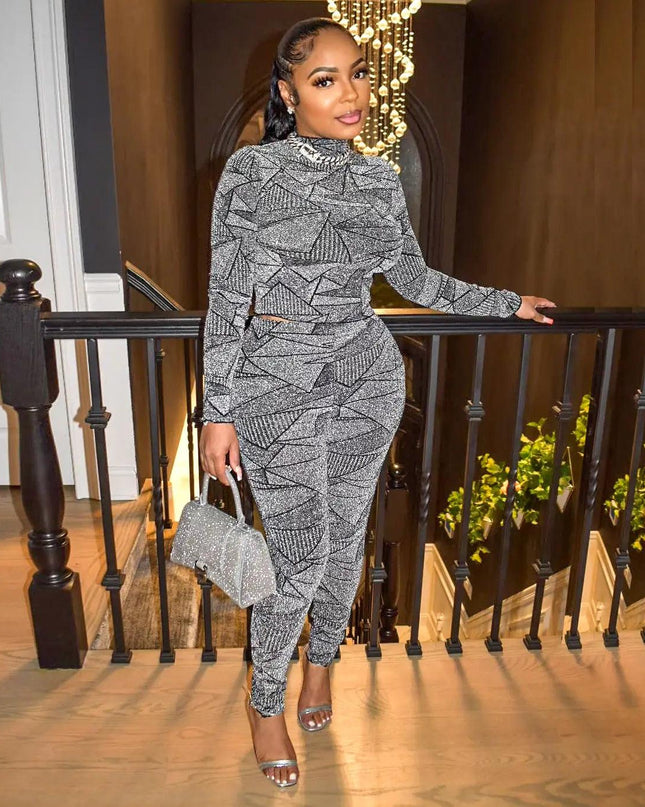 Abstract Blouse Top Elastic Waist Pant Casual Streetwear