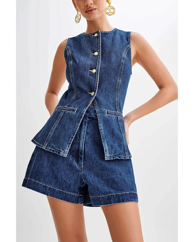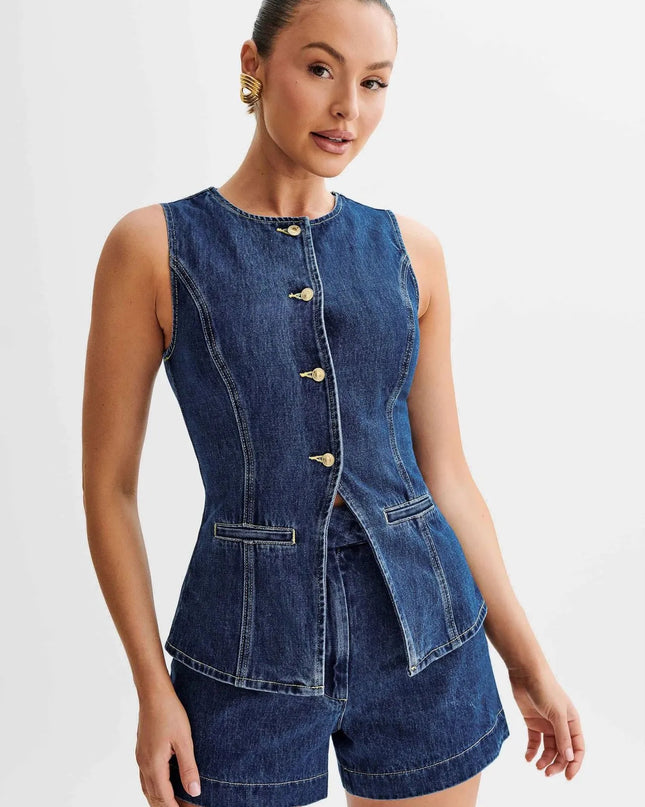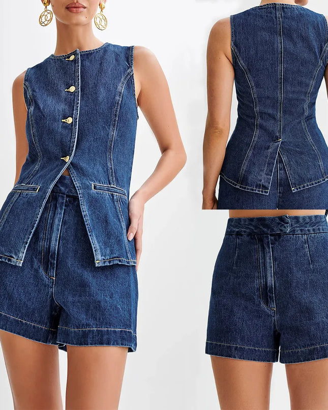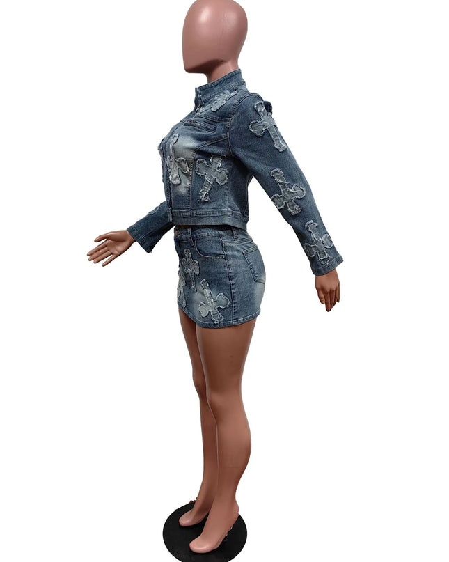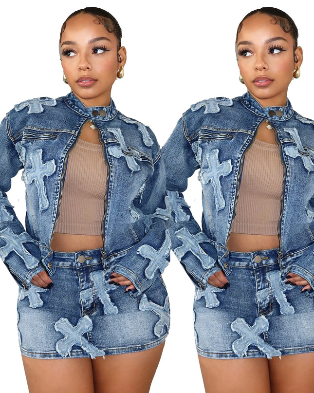 Slim-Fit Stand Collar Jacket & Skirt Set