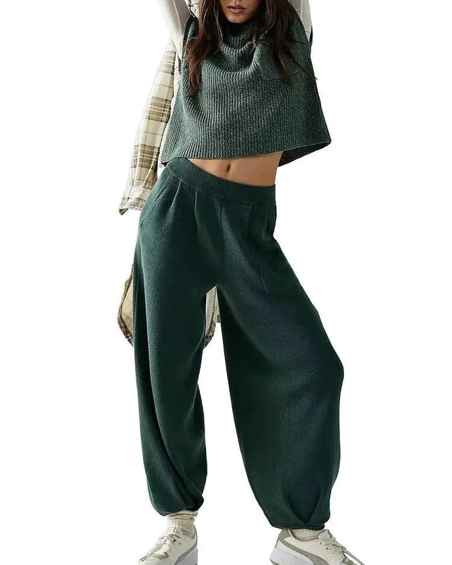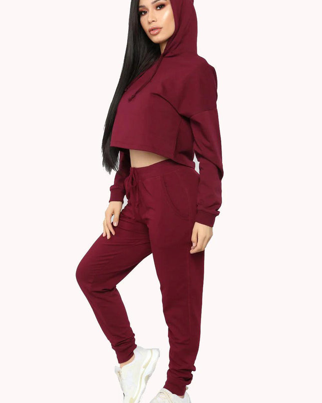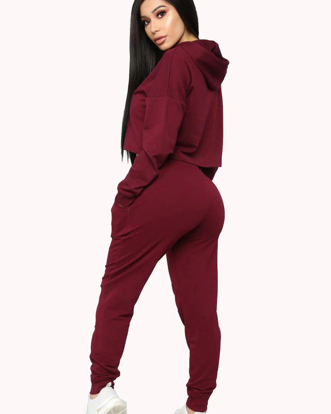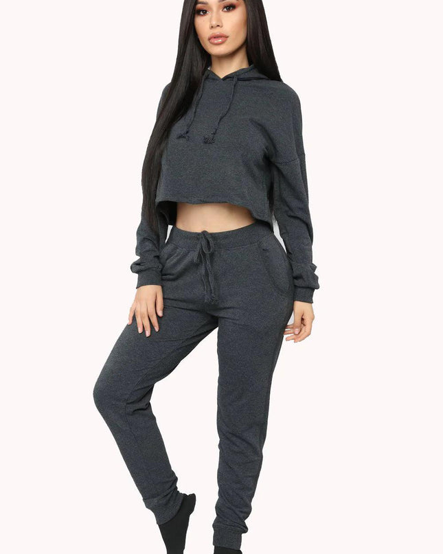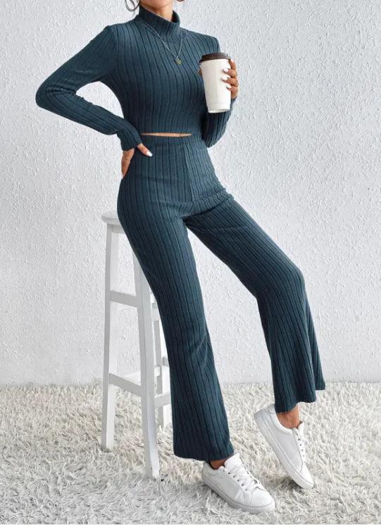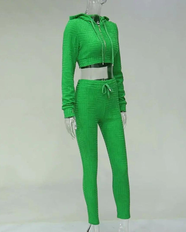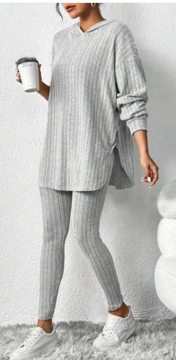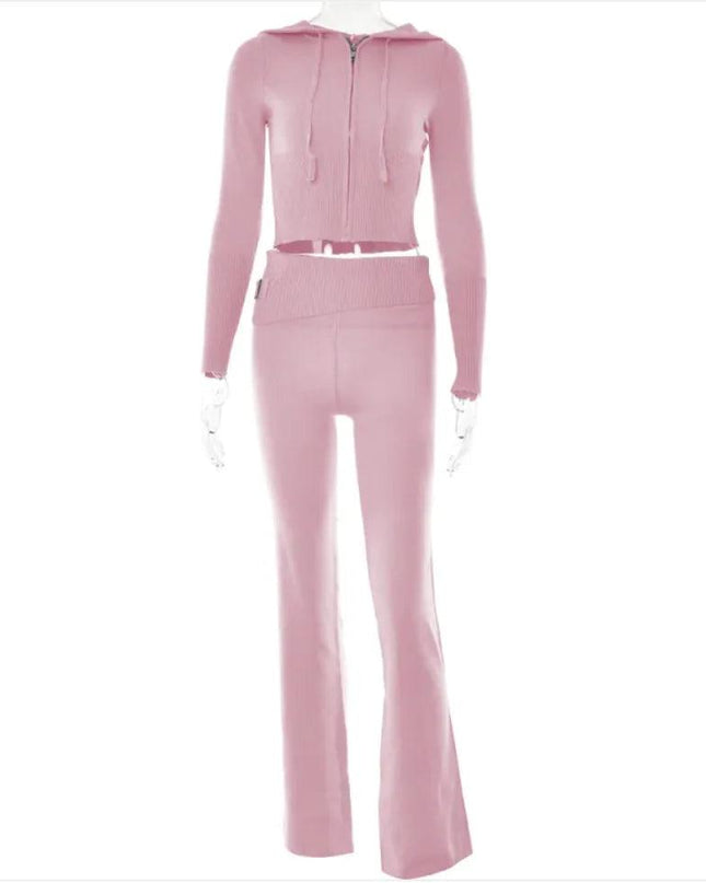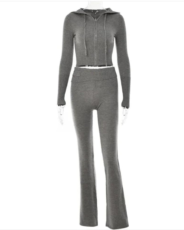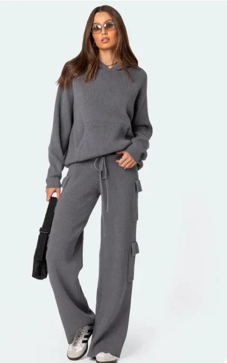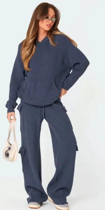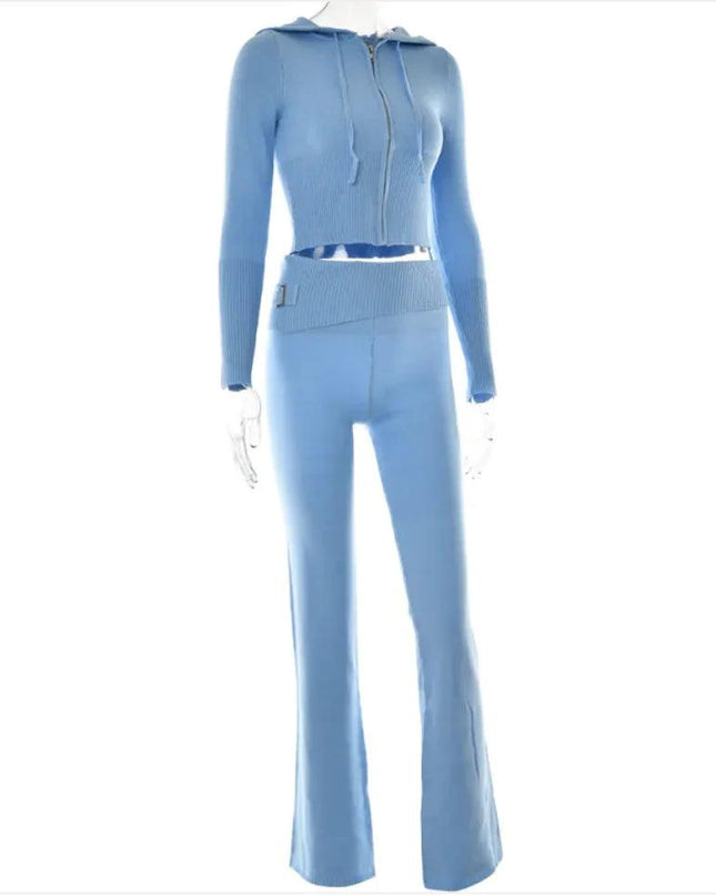 Cross-Border Knitted Hooded Suit - Fashionable High-Waist Two-Piece Set with Long Sleeves and Trousers