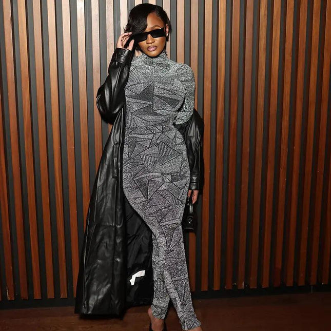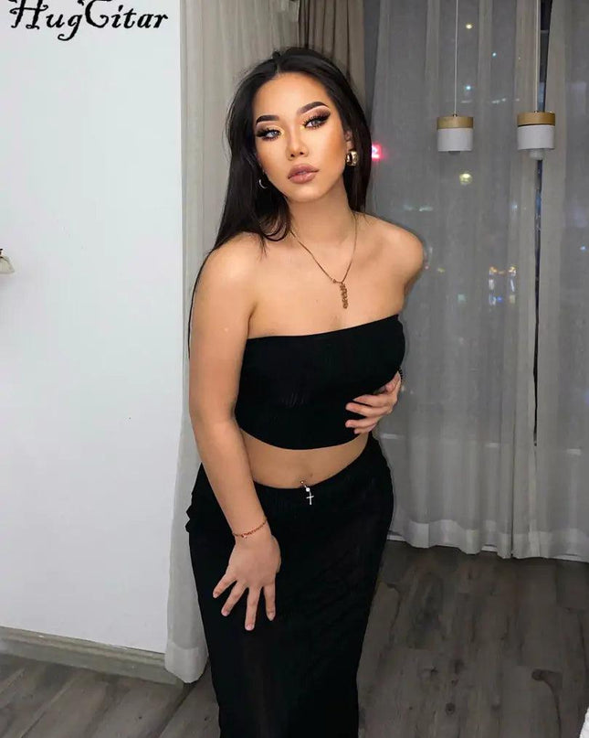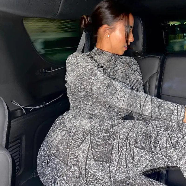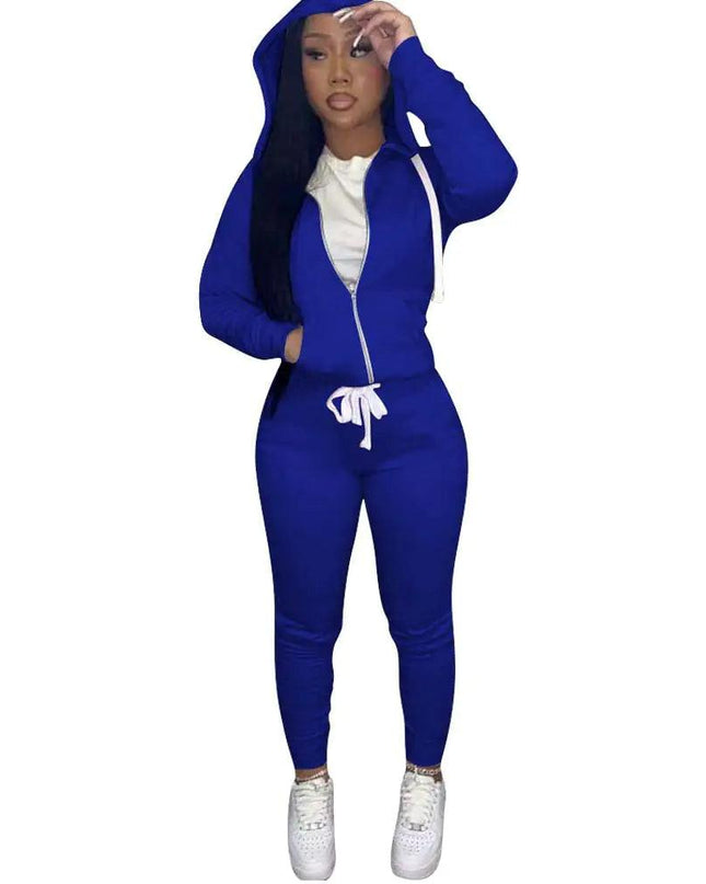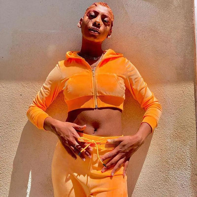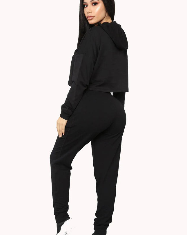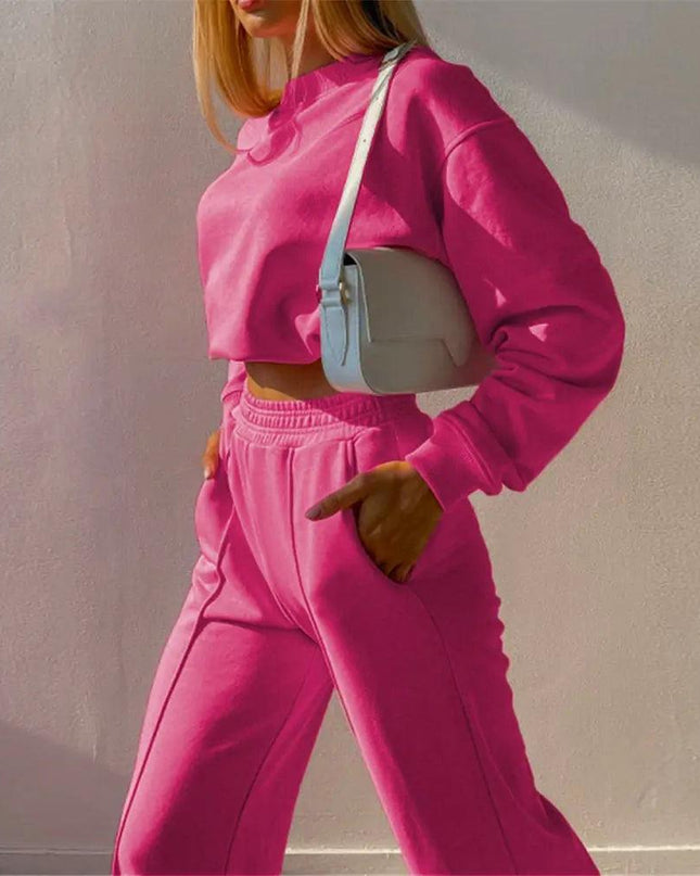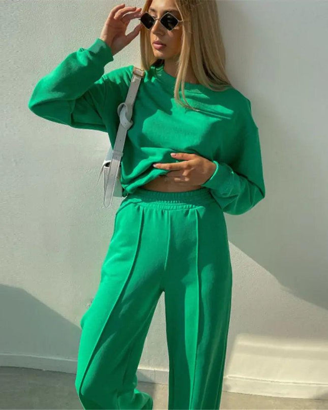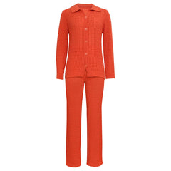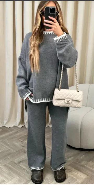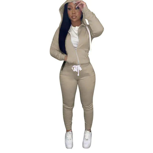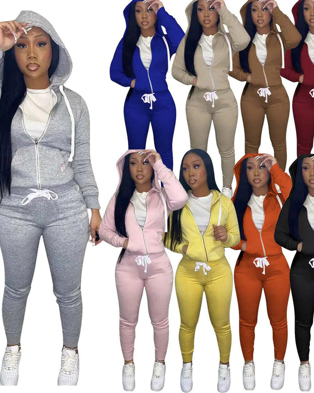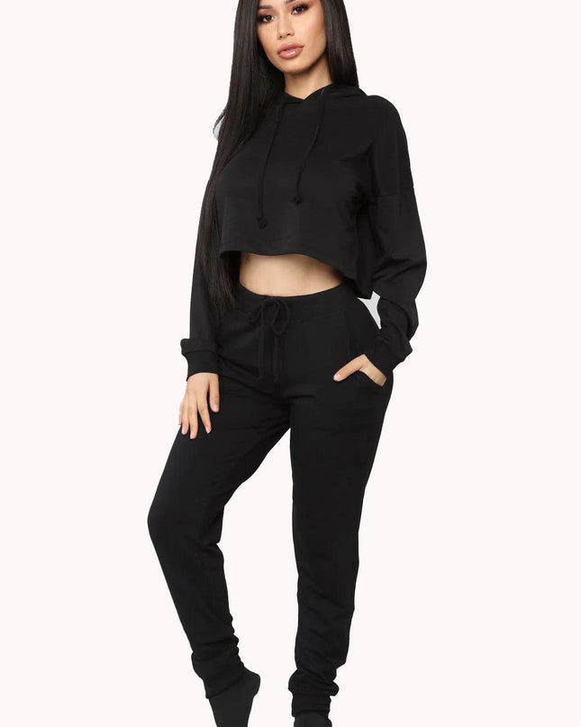 Cross-Border Knitted Hooded Suit - Fashionable High-Waist Two-Piece Set with Long Sleeves and Trousers