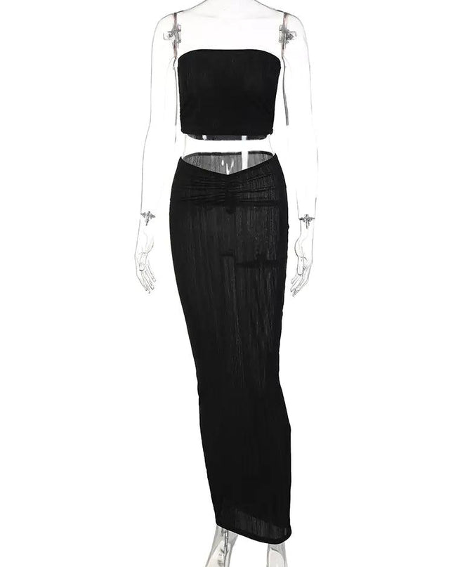 Lace Midriff Outfit Bell Sleeve Top Hip Skirt Suit HY120