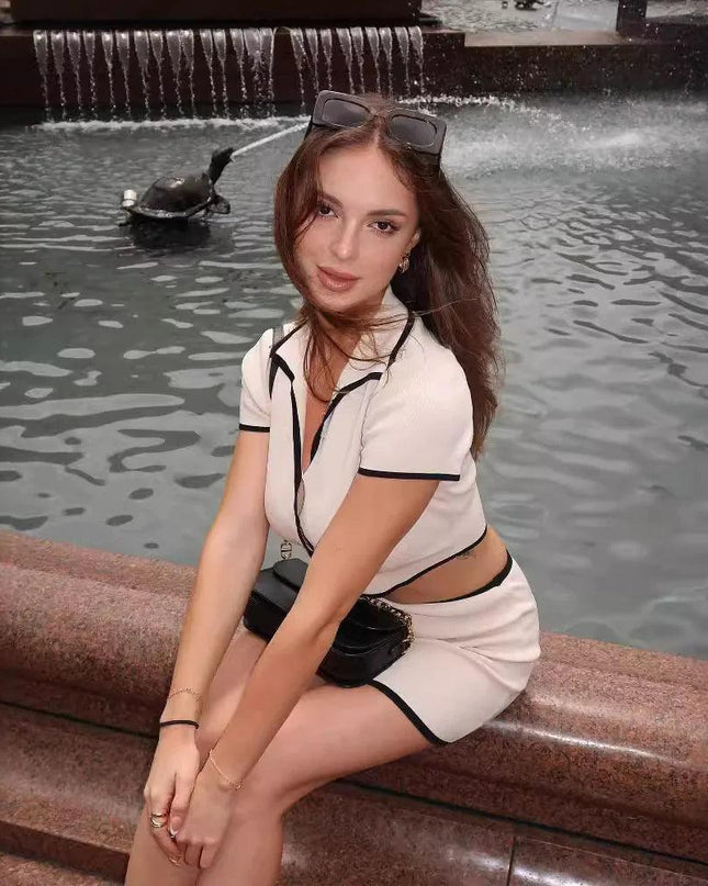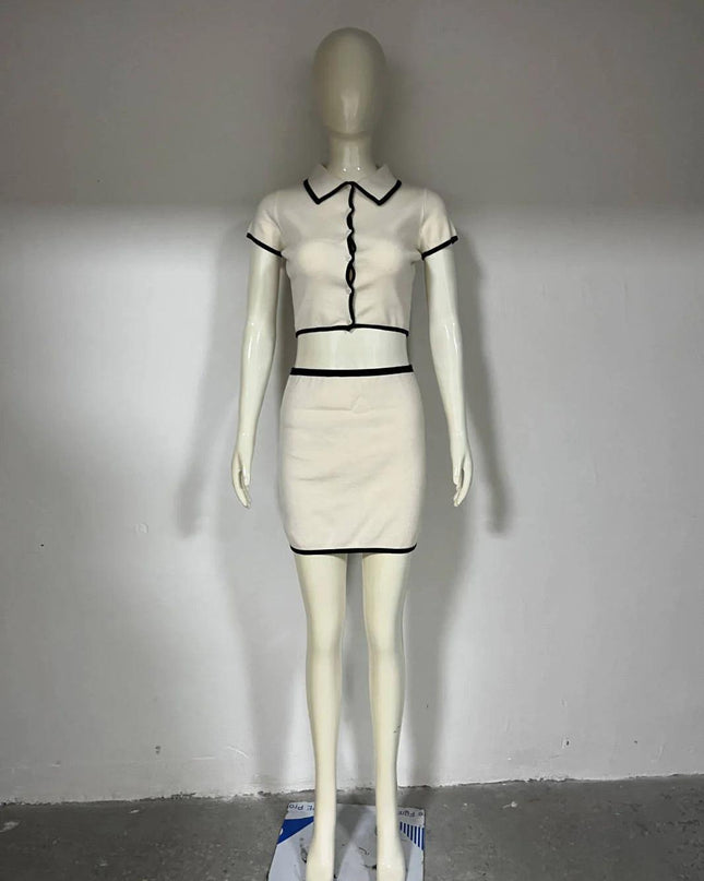 Trim Knitted Cardigan Sheath Skirt Outfit