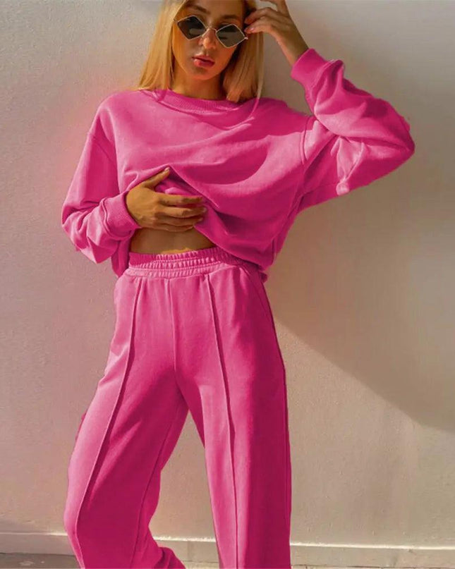 Autumn Solid Color Sunken Stripe Loose-fitting Hoodie Long Sleeve Suit
