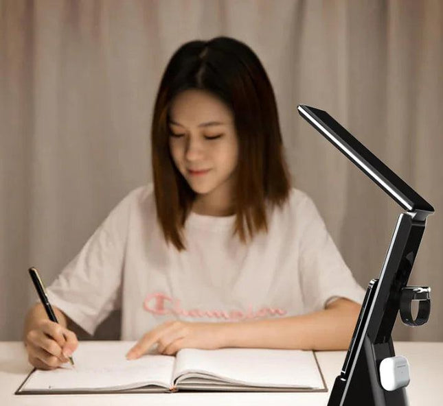 3 in 1 QI Wireless Charger LED Desk Lamp With Alarm Clock Eye Protect Table