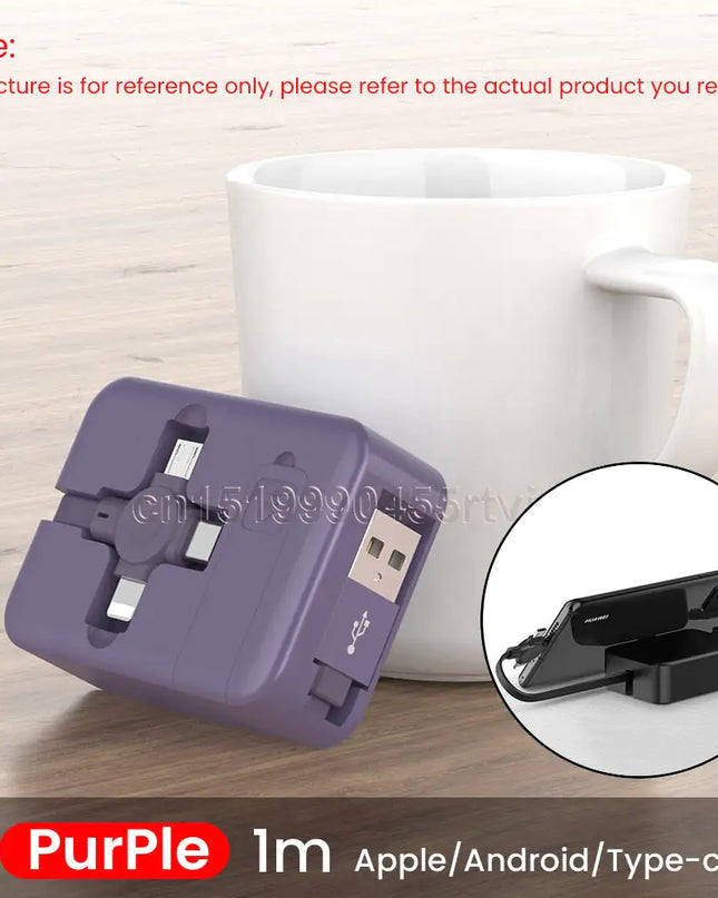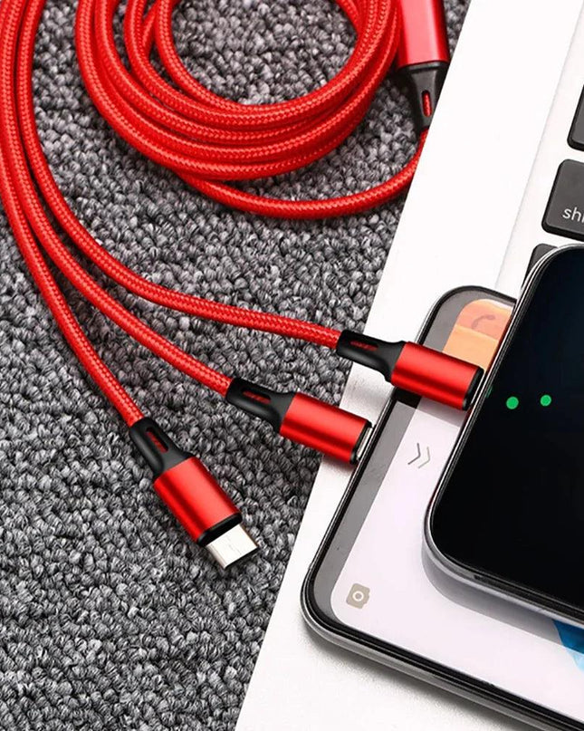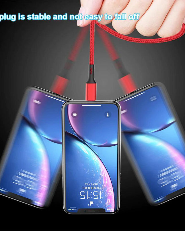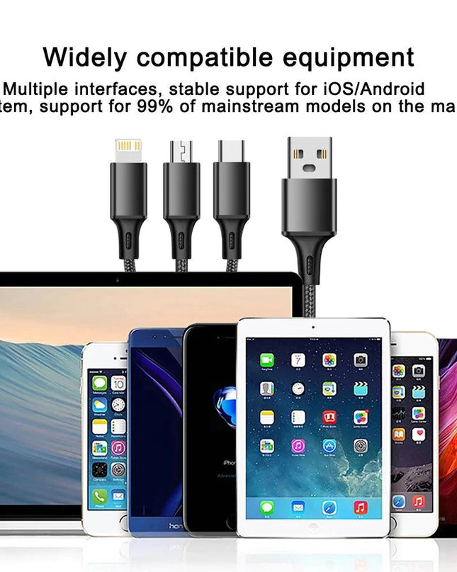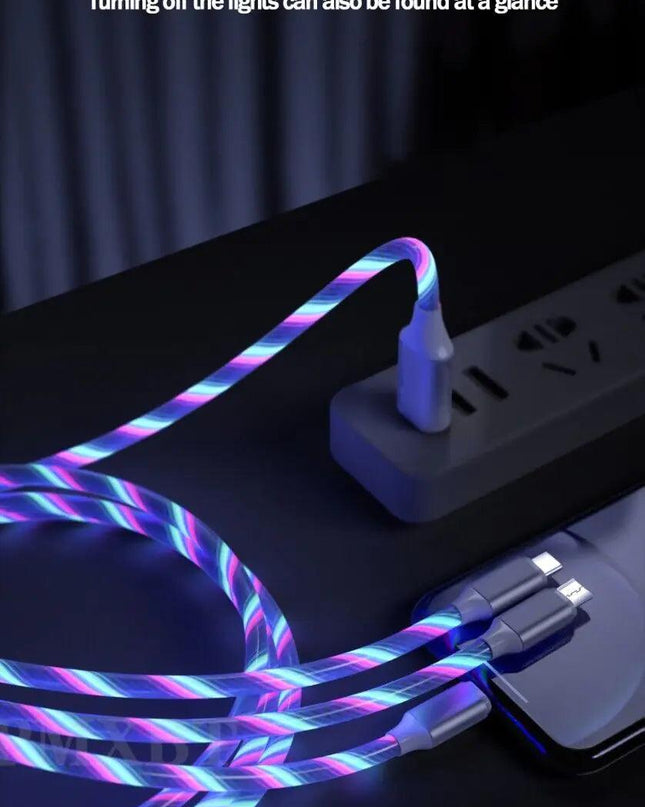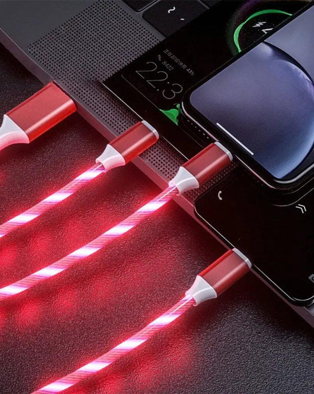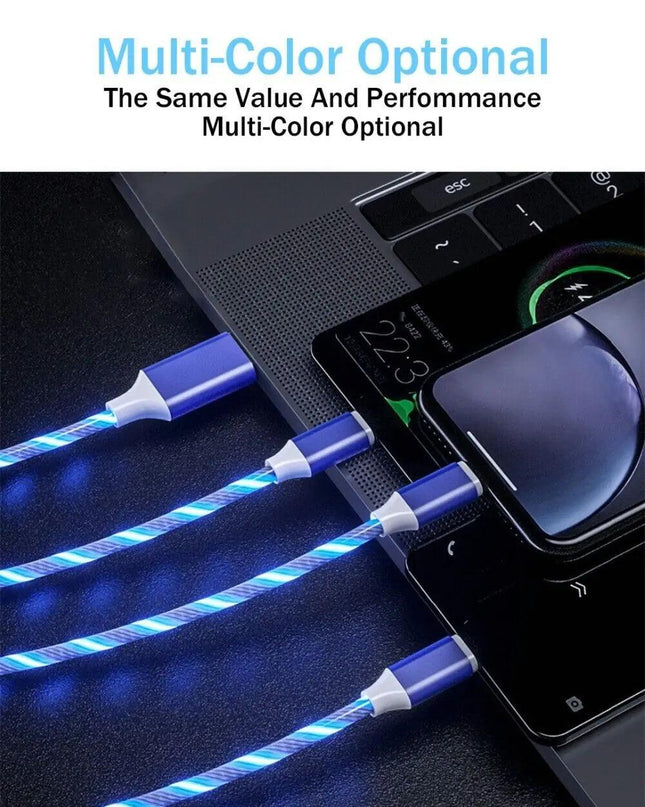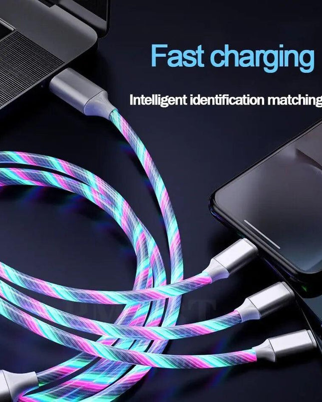 3 in 1 LED Fast Charging Cable Adapter For iPhone Micro USB Type C Charger Cord