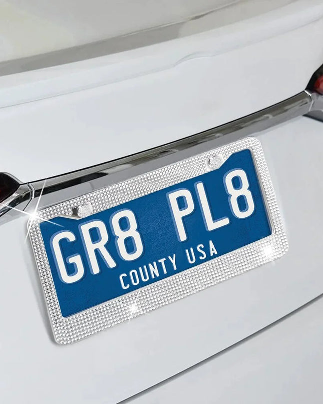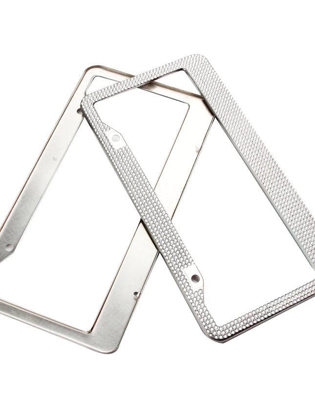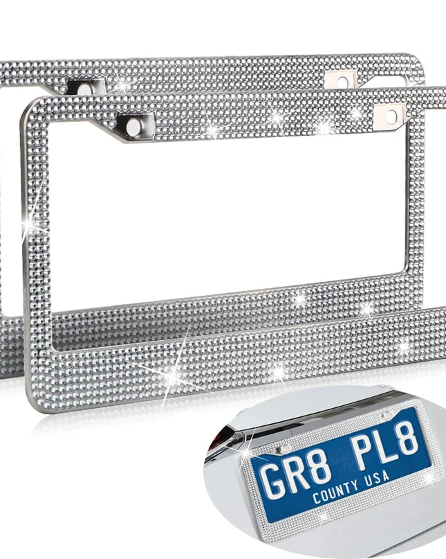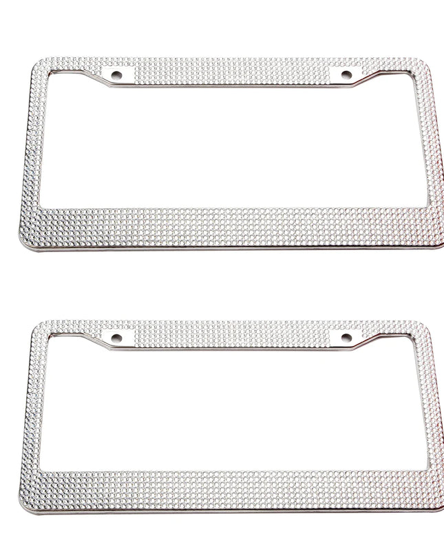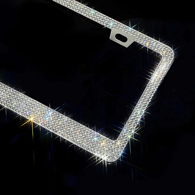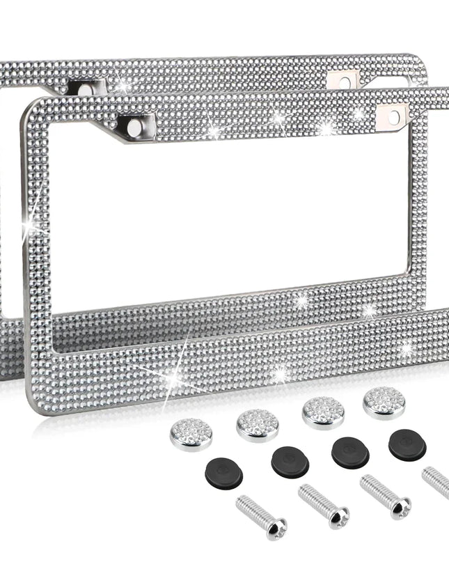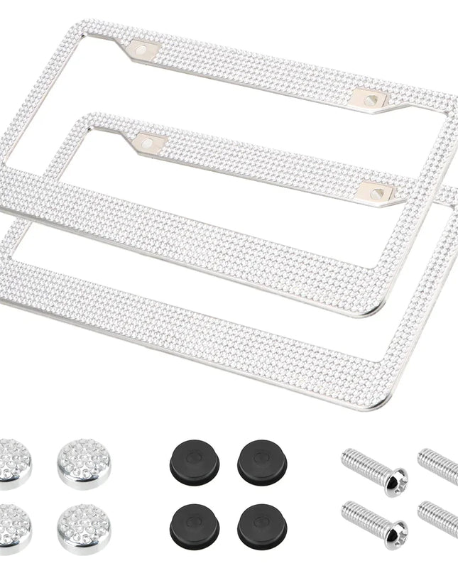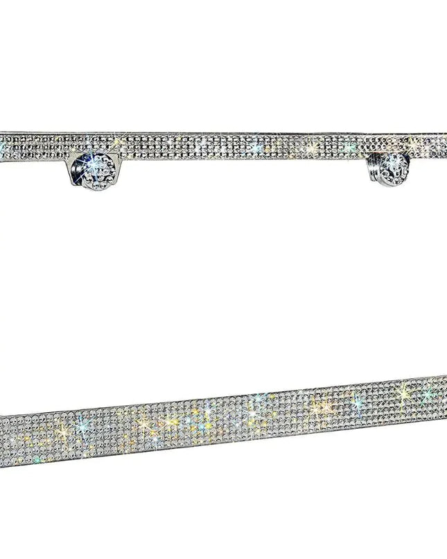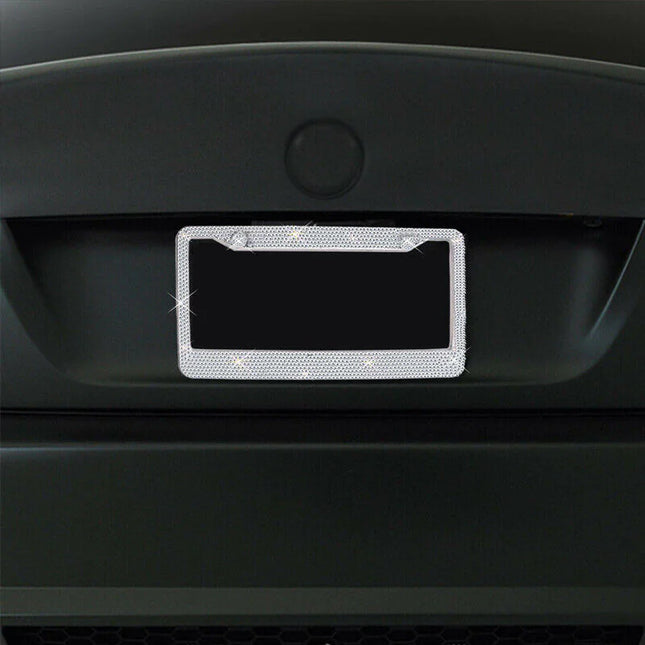 2PCS Bling License Plate Frame Glitter Crystal Sparkling Rhinestone Diamond Caps