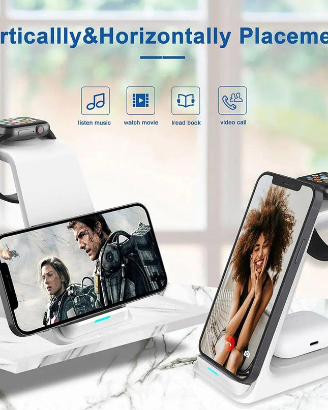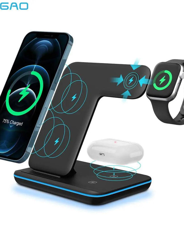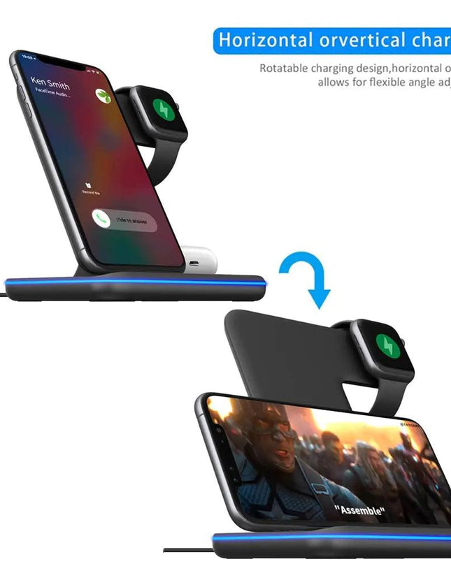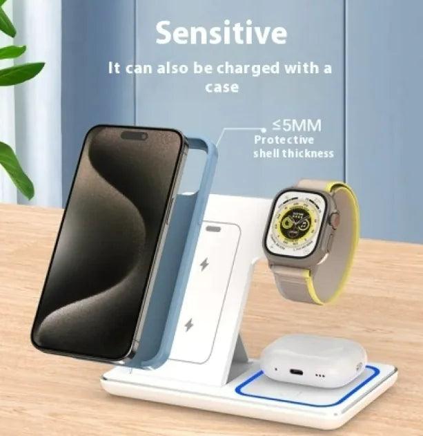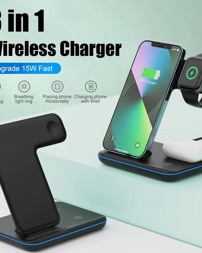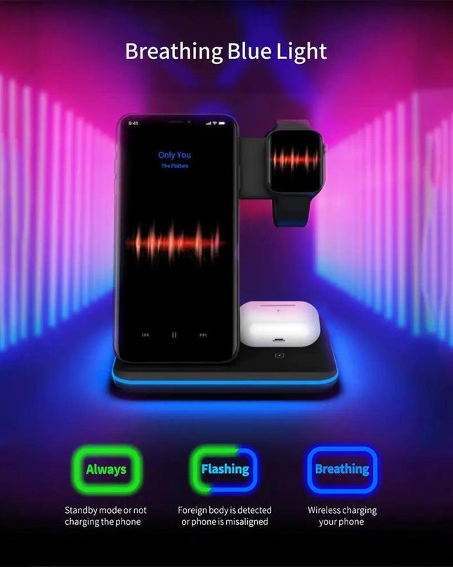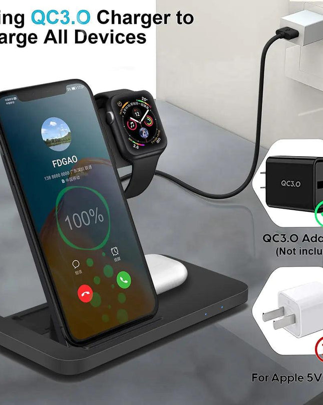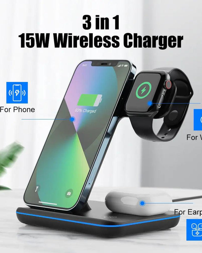 15W 3 In 1 LED Foldable Fast Wireless Charger Stand