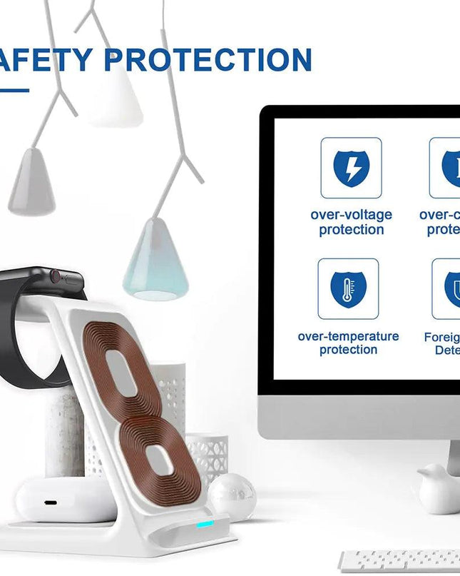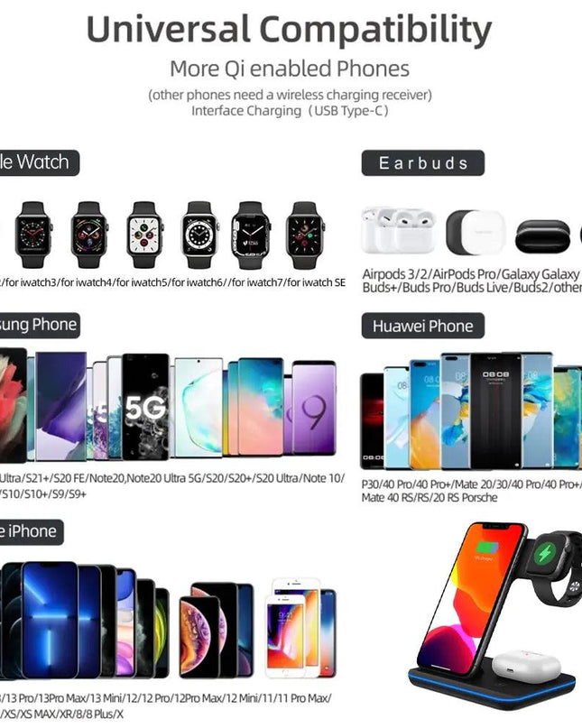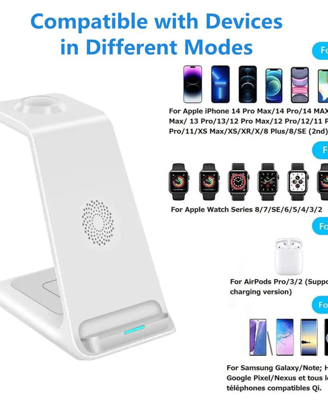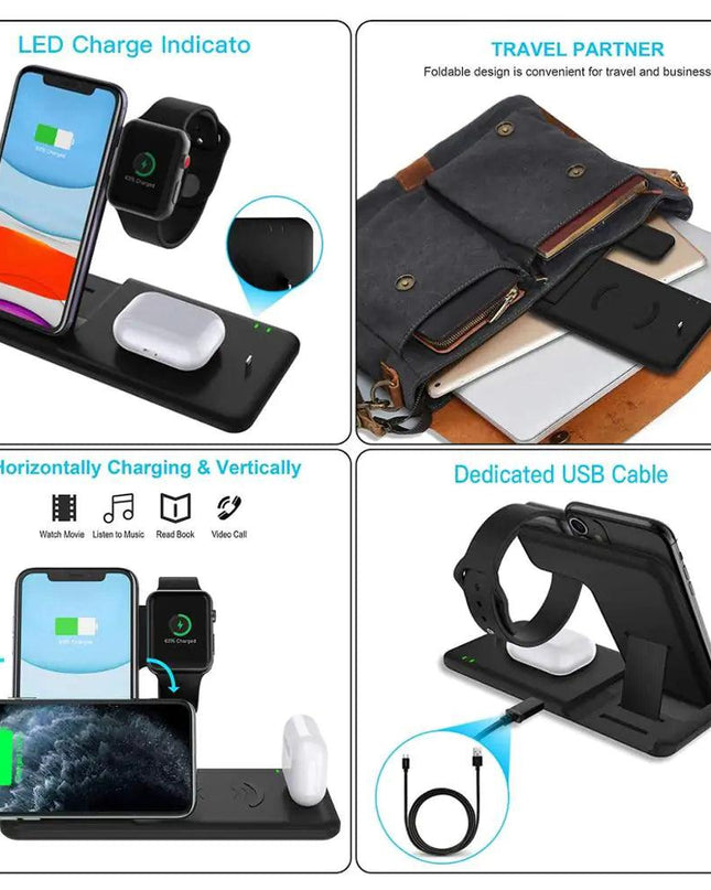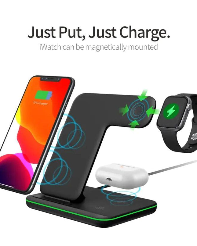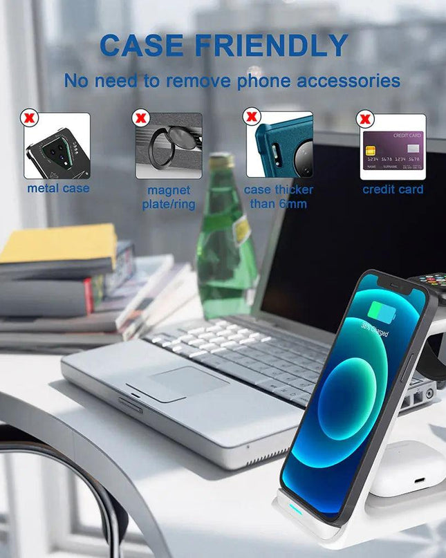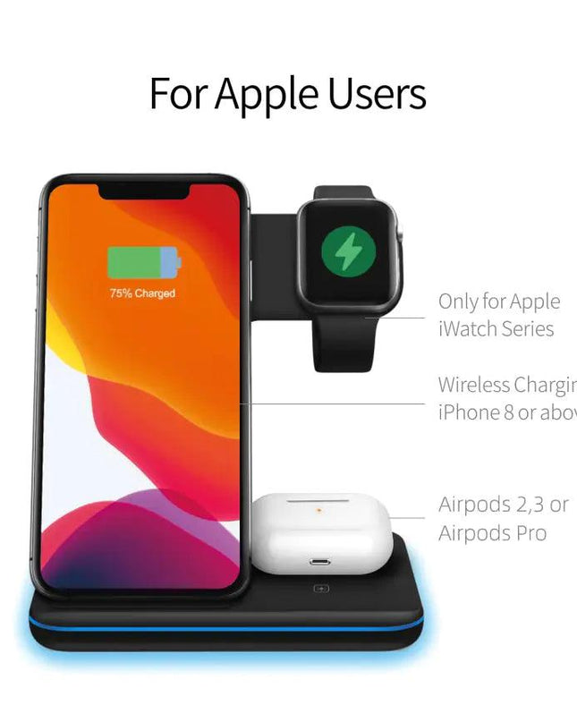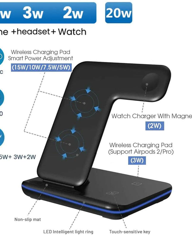 15W 3 In 1 LED Foldable Fast Wireless Charger Stand