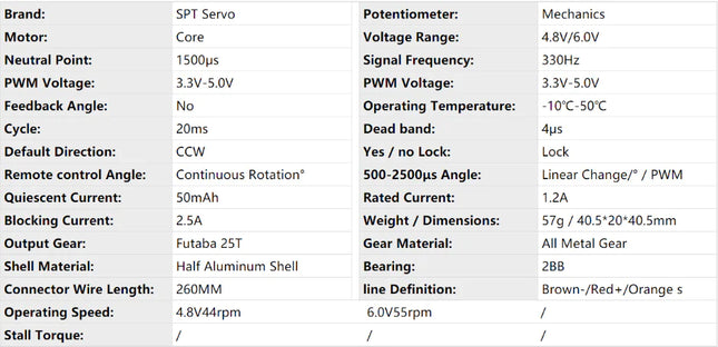 1500μs/ 330hz 360 Continuous Rotation SPT5525LV-360 25KG Digital Servo