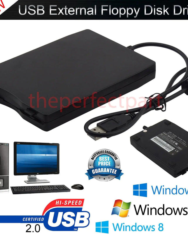 3.5” USB 2.0 Data External Floppy Disk Drive 1.44MB For Laptop PC Win 7/8/10 Mac