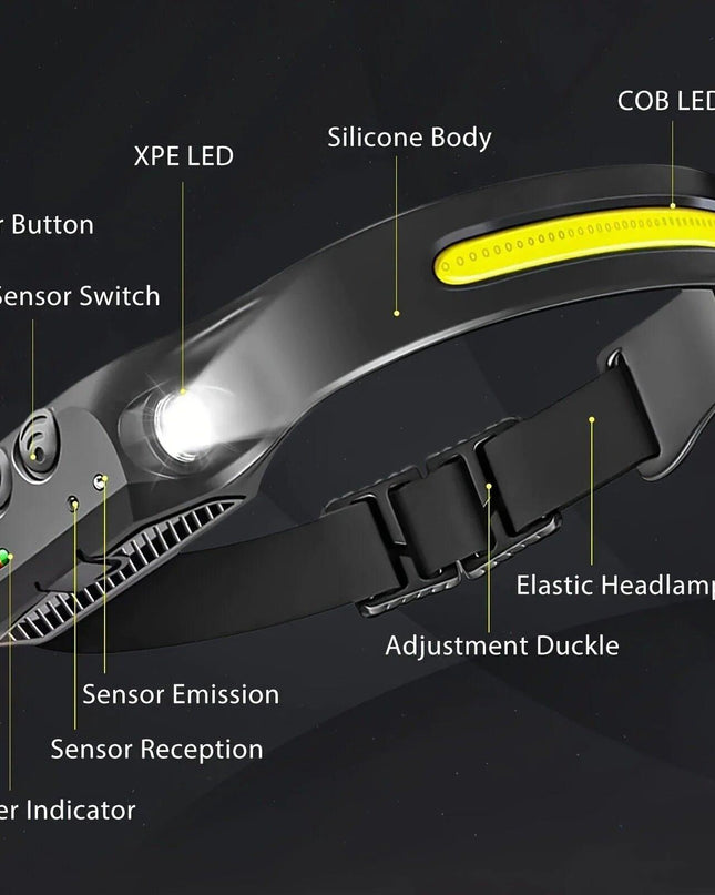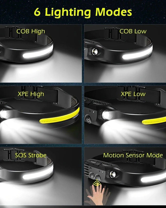 2-Pack COB LED Headlamp with Motion Sensor and USB-C Charging