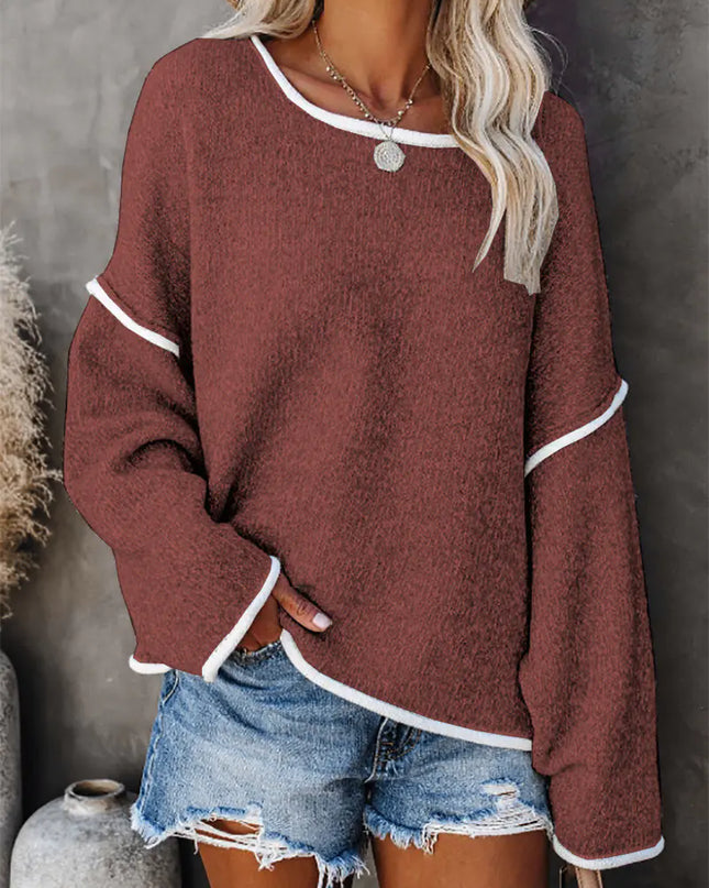 Casual Round Neck Long-sleeved Sweater Top in Solid Colors