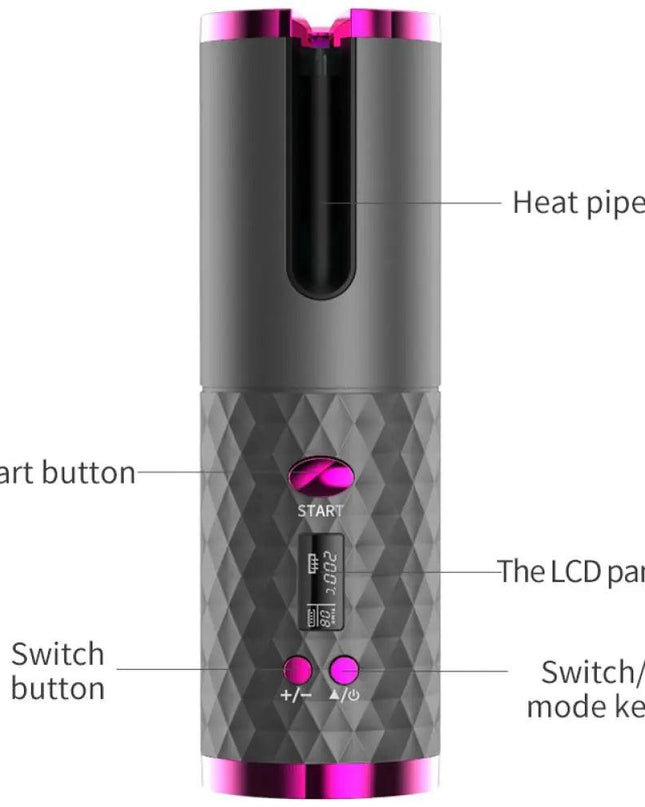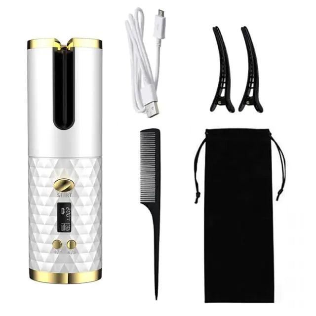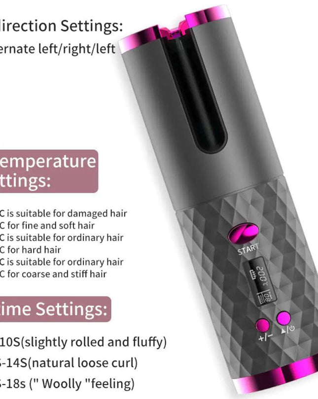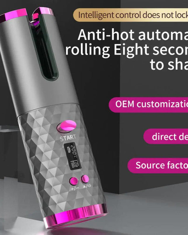 Automatic Wireless Hair Curler Cordless Rotating USB Rechargeable Curling Iron Display Temperature Adjustable Timing Hair Curler