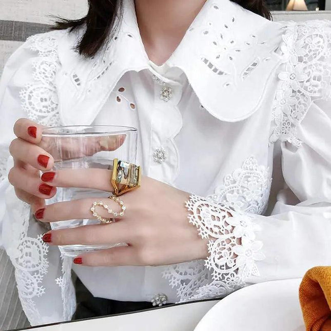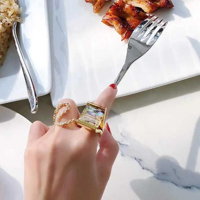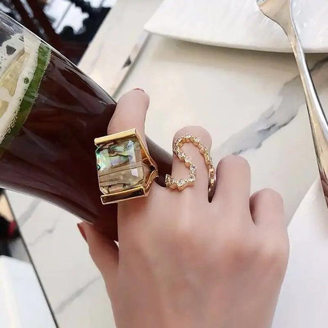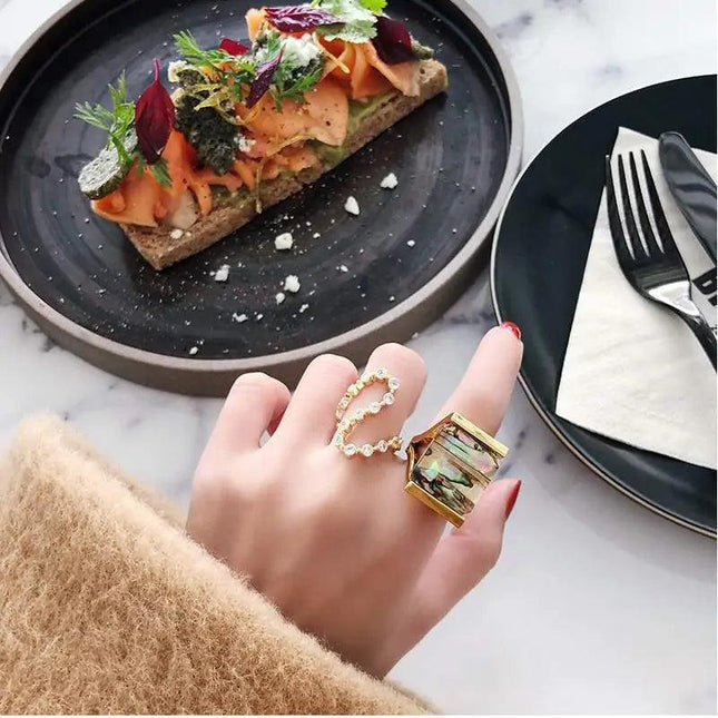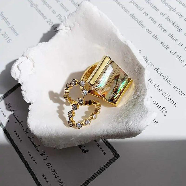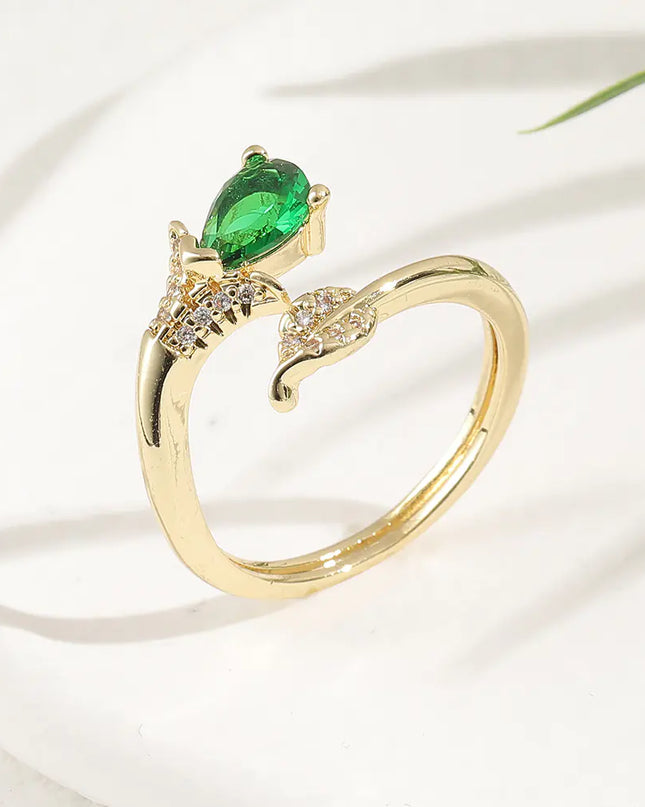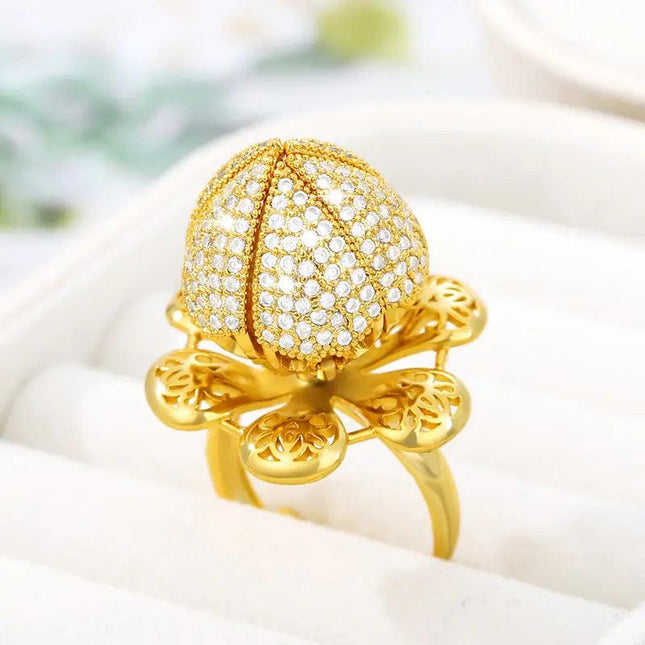 Copper Plated Gold Inlaid Zircon Fashion Ring