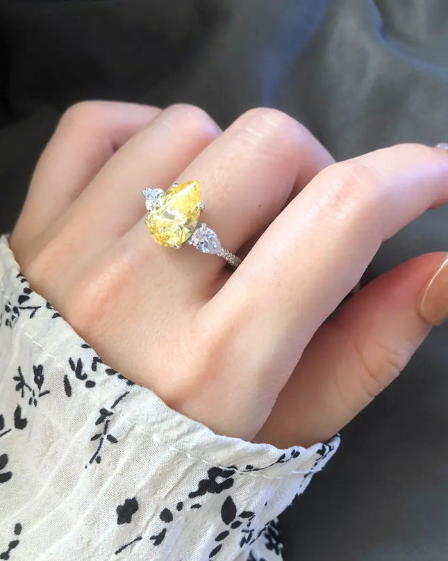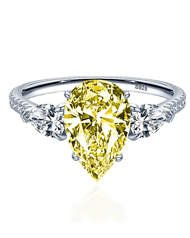 Drop-Shaped Yellow Diamond Ring in Sterling Silver