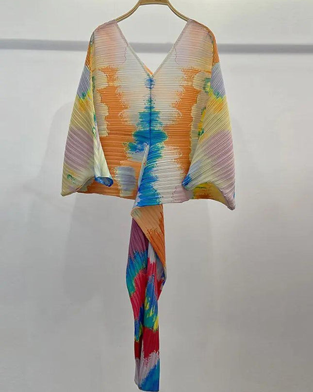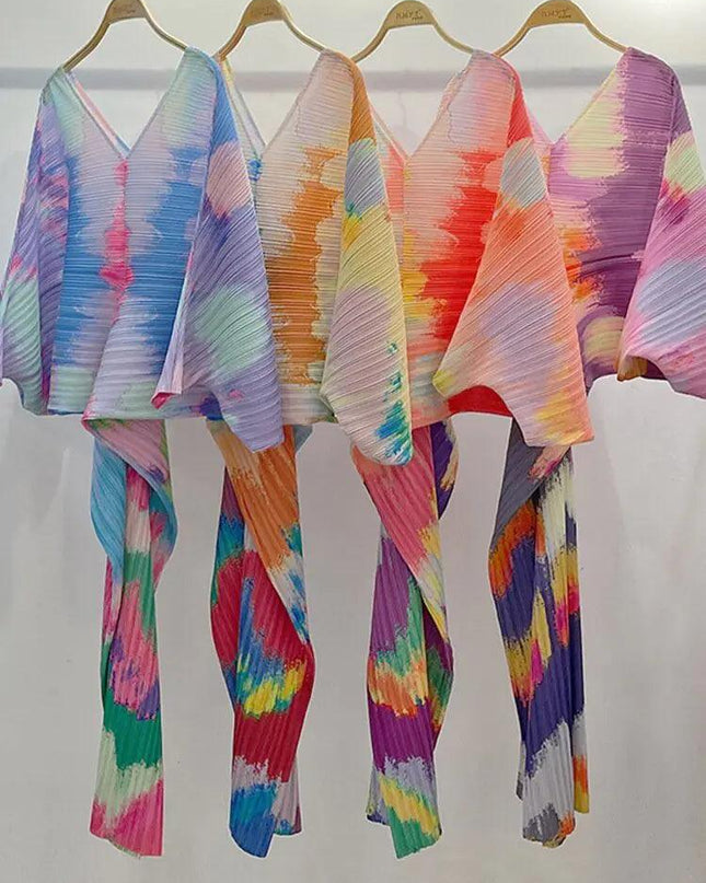 Abstract Blouse Top Elastic Waist Pant Casual Streetwear