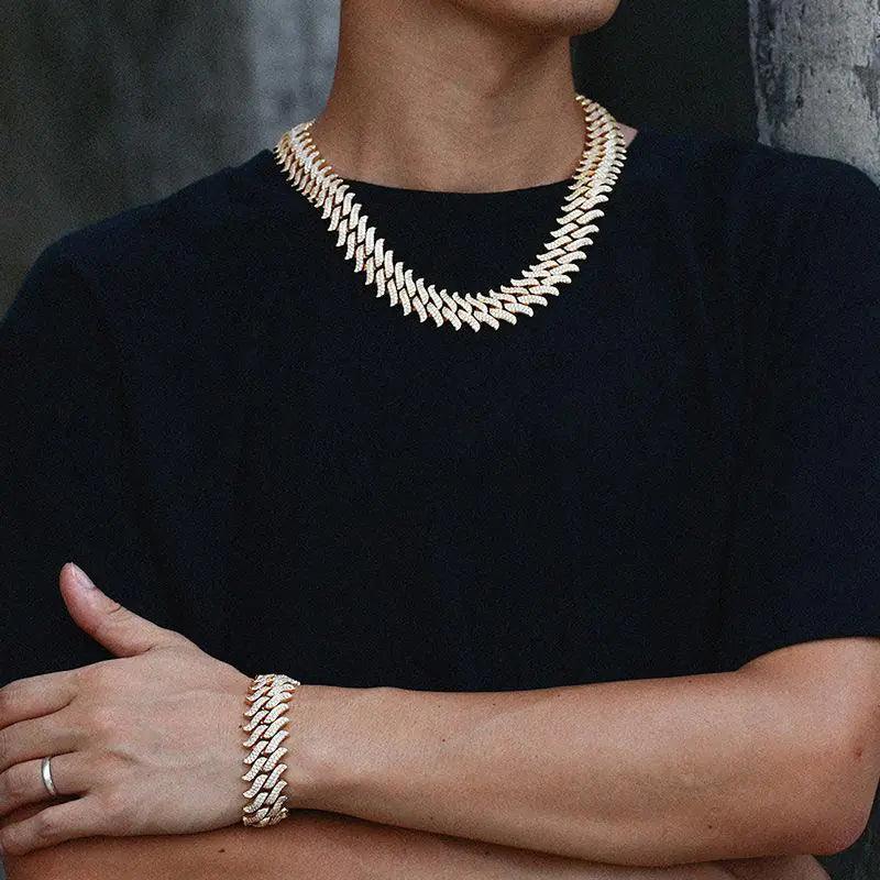 Elevate your style with our stunning 18mm Gold Two-Row Diamond Thorns Cuban Link Bracelet – a masterpiece that effortlessly blends...