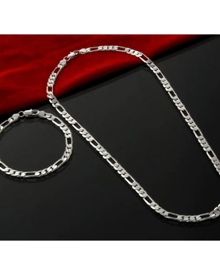 Elevate your style with the 4mm Figaro Chain Bracelet & Necklace Set. Crafted from high-quality 925 silver, this two-piece accessory...