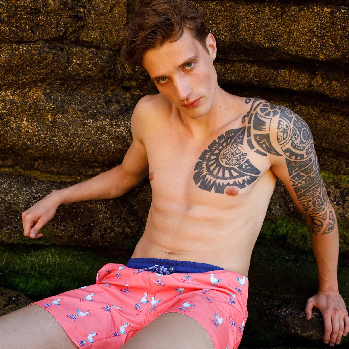 Anemoss Seagull Men Swim Trunk is made of 100% polyester. This mens swimsuit has an elastic waistband with a drawstring...