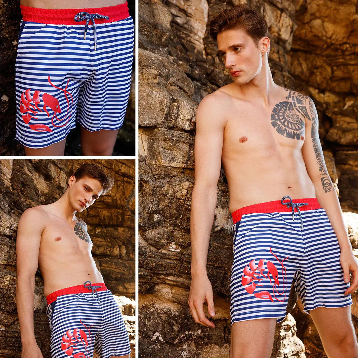 Anemoss Shrimp Men Swim Trunk is made of 100% polyester. This mens swimsuit has an elastic waistband with a drawstring...
