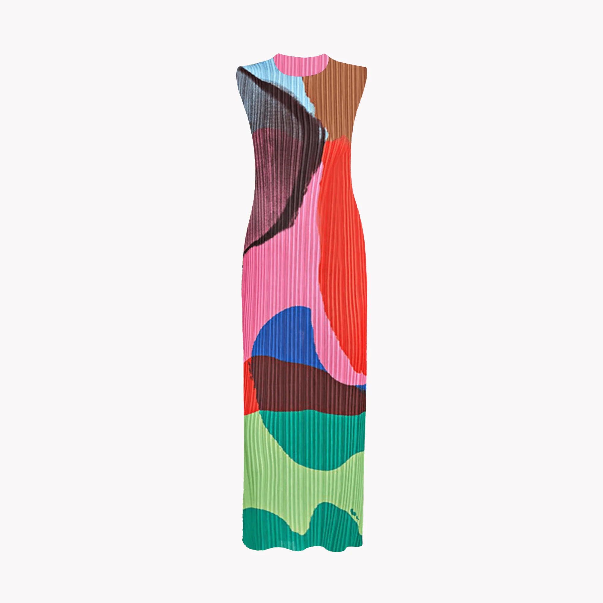 Blocked Pleated Pencil Dress