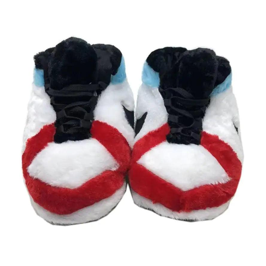"Step Up Your Style Game with Blue Red AJ 1 Novelty Sneaker Slippers!