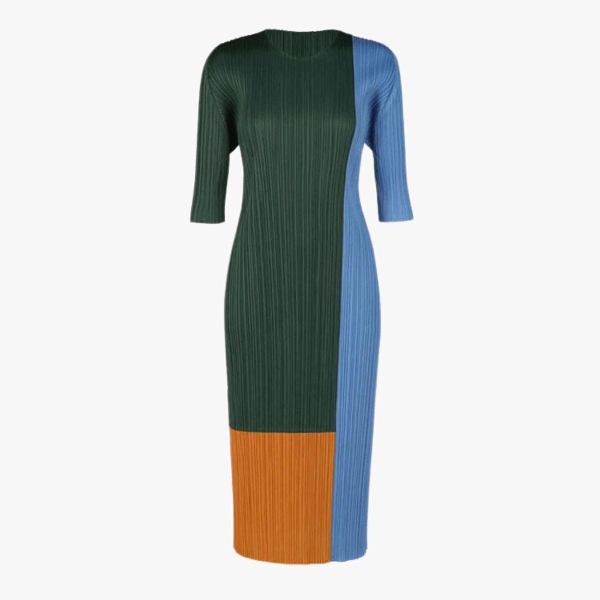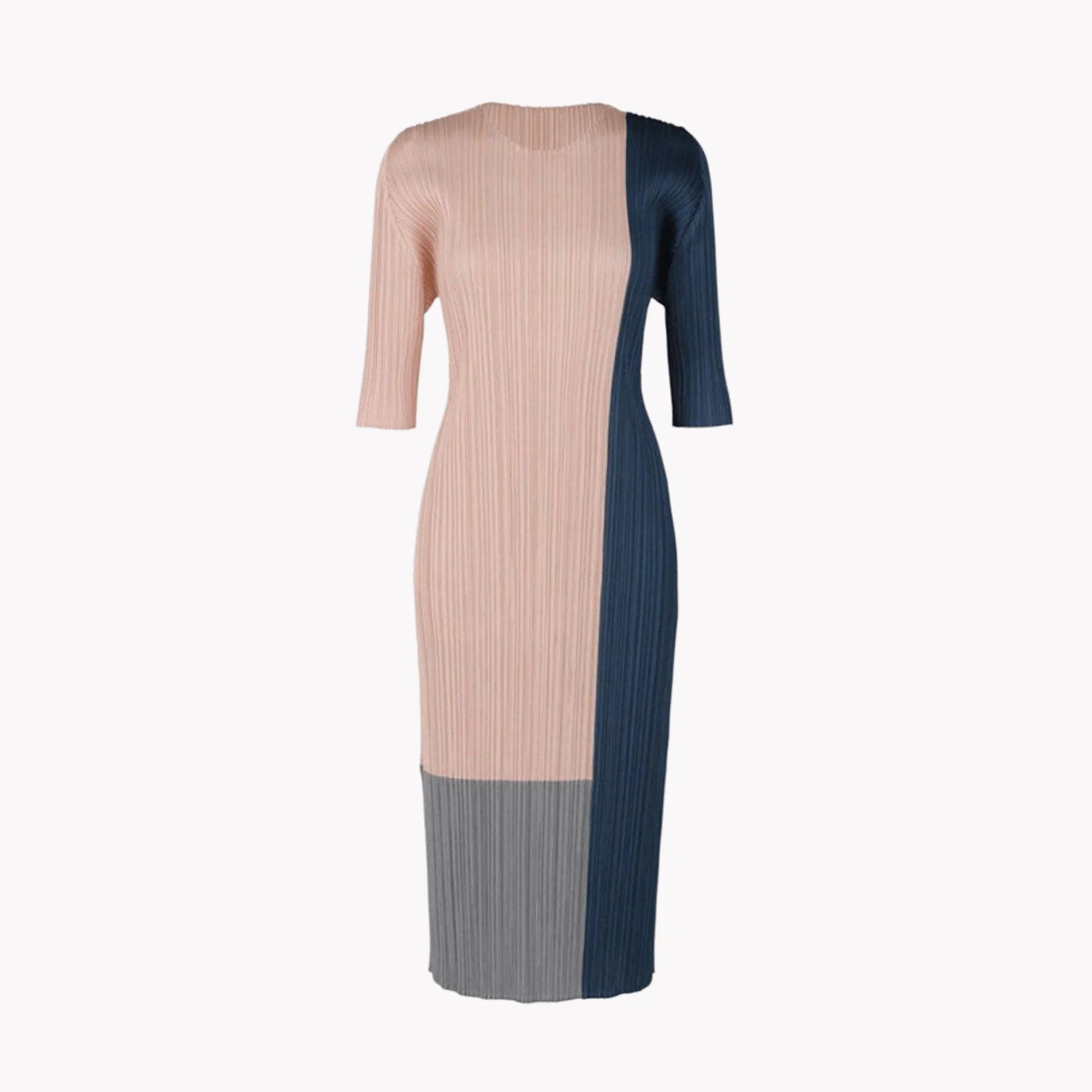 Dare to be different with the Color Block Pleated Dress, a perfect addition for those who love to express their unique sense of style. The striking color blocks combined with the elegant pleats create a modern yet timeless piece that showcases your fashion-forward thinking. Step out in confidence and let your inner fashionista shine with this standout dress, designed to make you feel fabulous and look extraordinary.