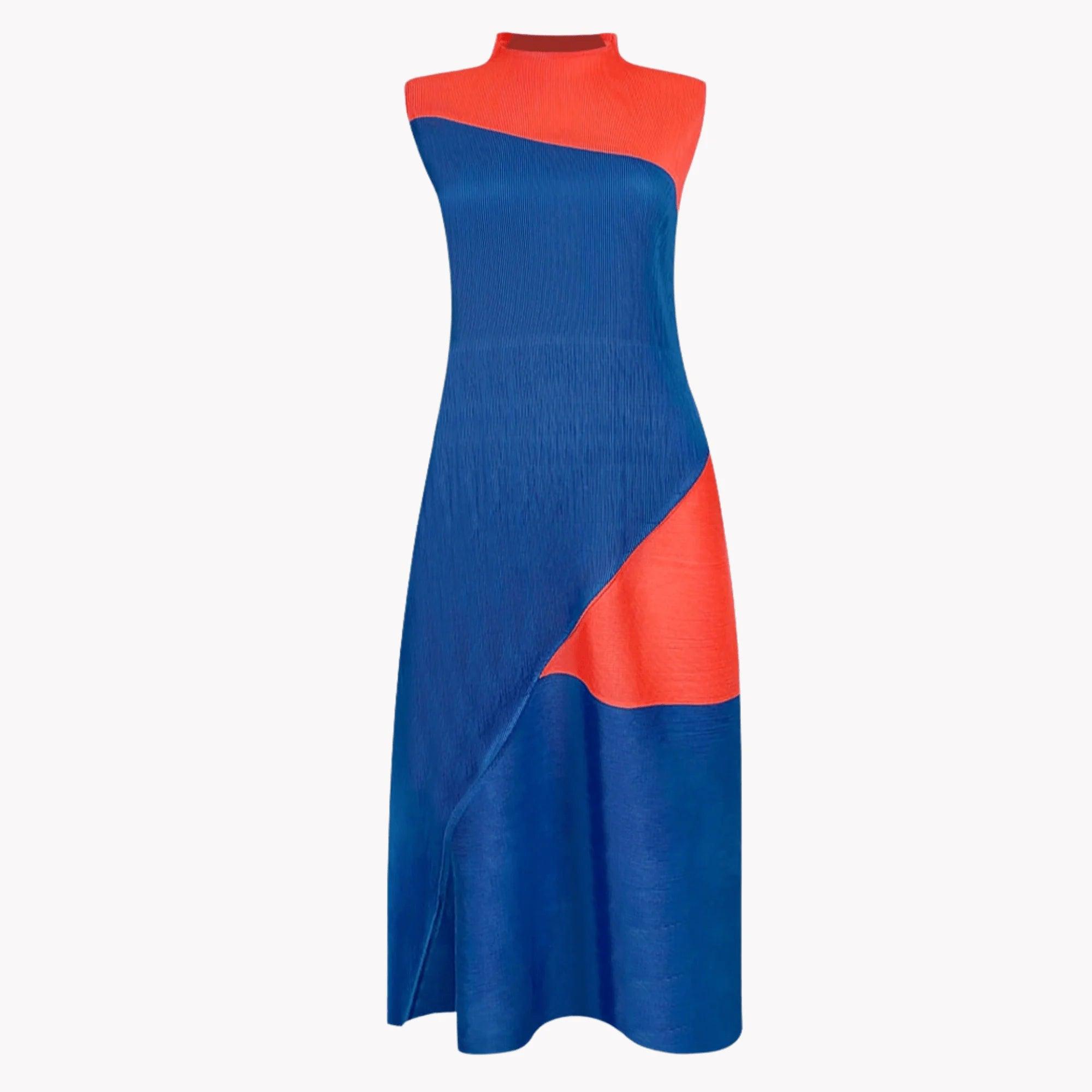 Stand Out in Style with our Contrast Color Pleated Dress