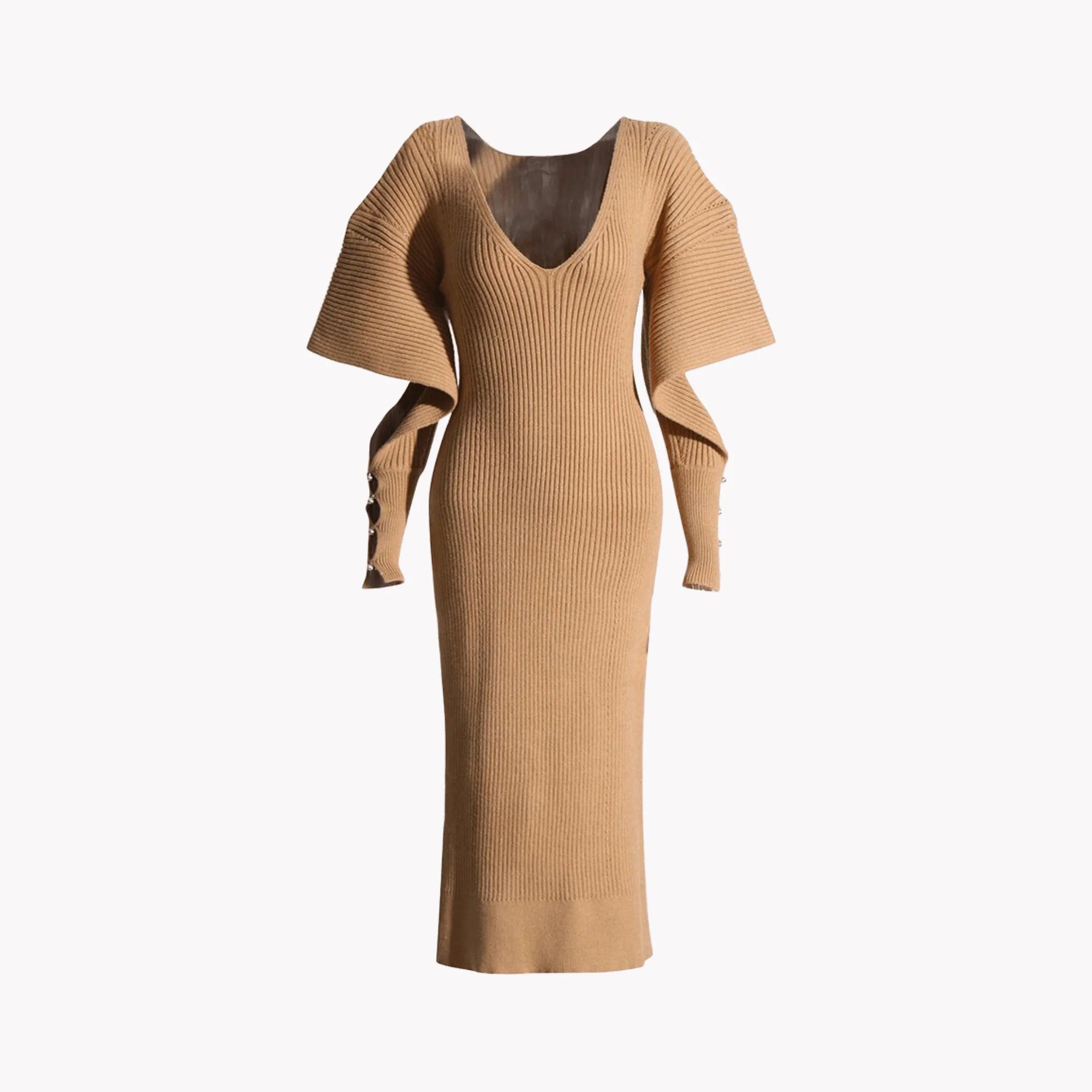 Embrace timeless sophistication in our Dramatic Shoulder Knit Dress. Crafted from luxurious knit fabric, this dress drapes beautifully, accentuating your silhouette with its dramatic shoulder detailing. Perfect for evening soirées or special occasions, it effortlessly combines comfort with style, ensuring you stand out with every step.