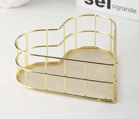Iron Storage Basket Desktop Heart-shaped Rose Gold Finishing Creative