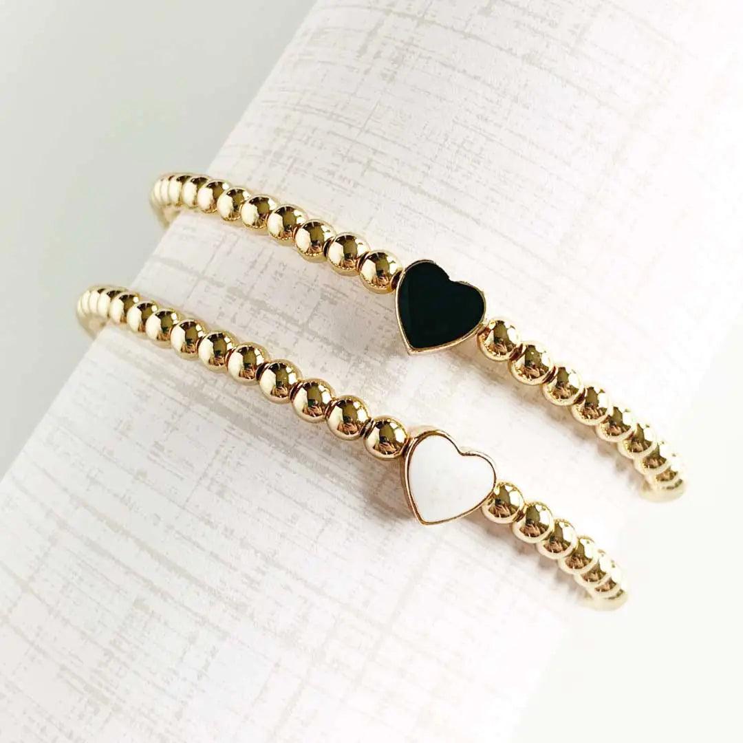 The childhood friendship bracelet gets an extra chic update featuring a row of 4mm gold balls and a delicate pink...