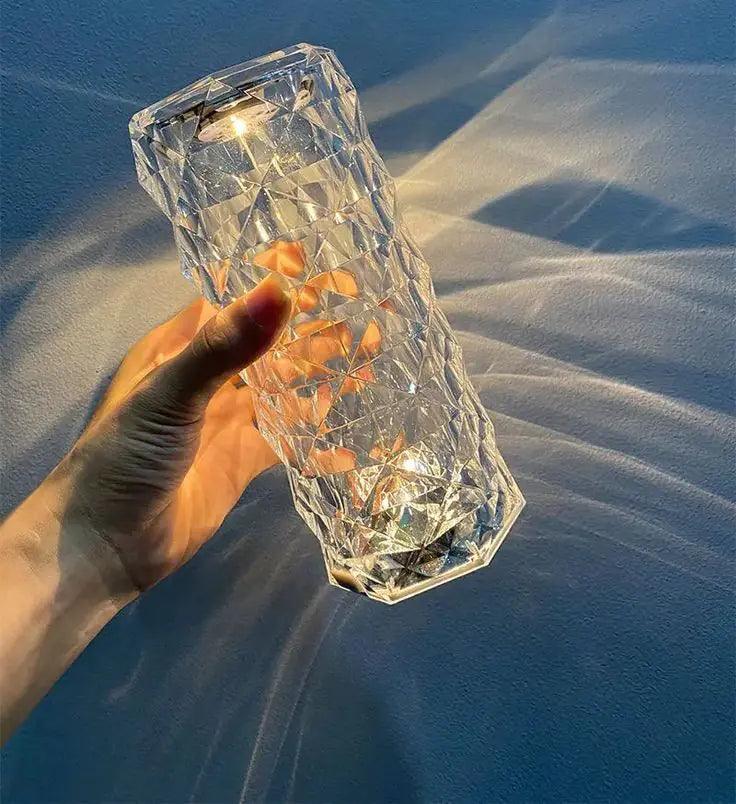 Designed for the modern interior, this lamp boasts a stunning columnar diamond design with a mesmerizing 3D rose ambient light that adds a touch of elegance to any room.