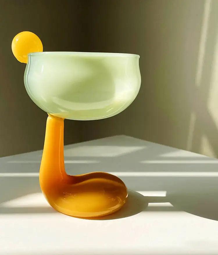 Experience the perfect balance of form and function as the Palm Goblet Glass seamlessly transitions from hot to cold beverages without compromising on durability. Its unique handmade design ensures crystal-clear visuals, making every drink a feast for the eyes.