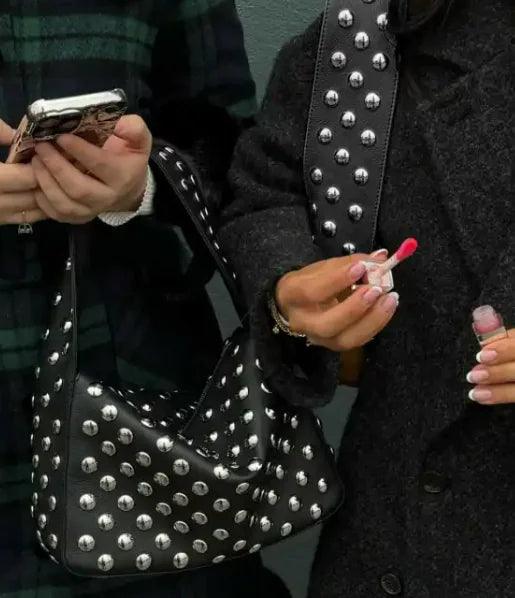 Gear up in style with the Rivet Underarm Shoulder Black Metal Motorcycle Bag, designed for those who crave both functionality and edgy fashion. Crafted from durable, high-quality materials, this bag features a sleek black leather finish with bold metal rivet details, adding a touch of rugged sophistication to your look. The underarm shoulder strap ensures a comfortable and secure fit, allowing you to wear it with ease while riding or on the go.