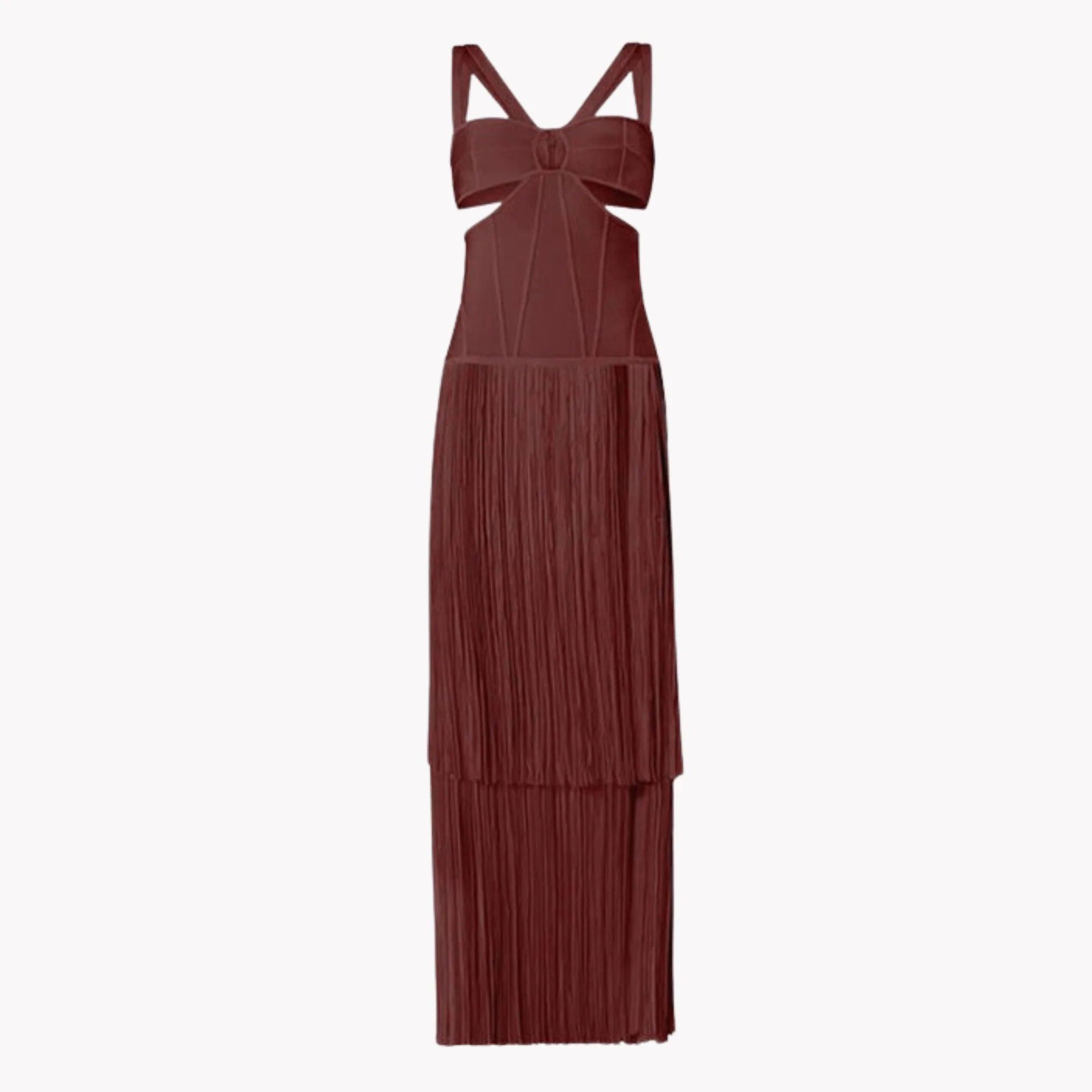Embrace your bold style with our strappy cutout fringed dress. Boasting a confident silhouette with strategic cutouts and eye-catching fringe, this dress is ideal for expressing your unique fashion sense and confidence.