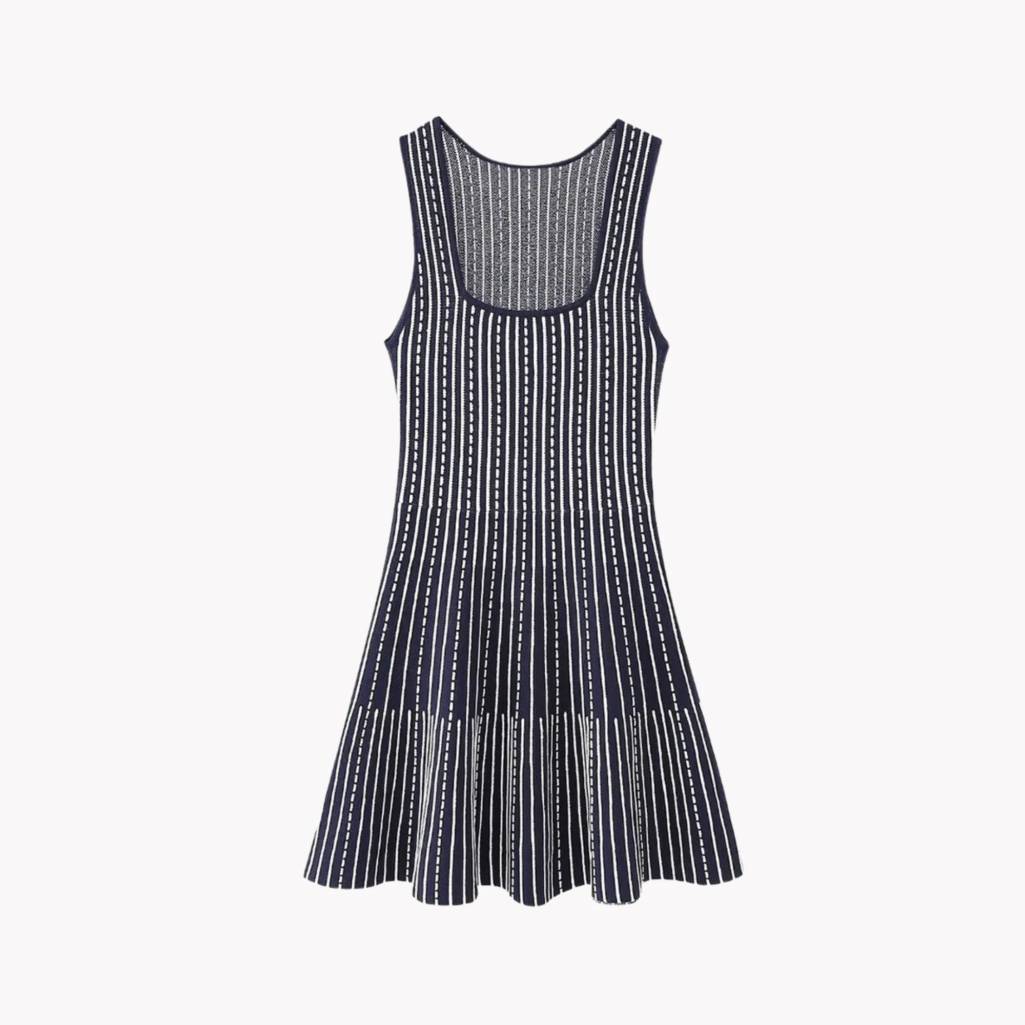 Turn heads wherever you go with our striped knit mini dress. The eye-catching stripes and figure-hugging fit create a look that's both bold and elegant. This dress is ideal for those who want to make a statement without overdoing it, offering a chic and effortless elegance that’s perfect for any setting.