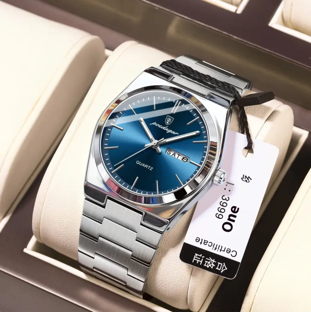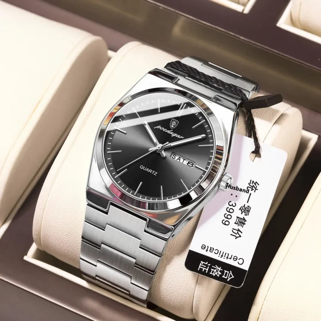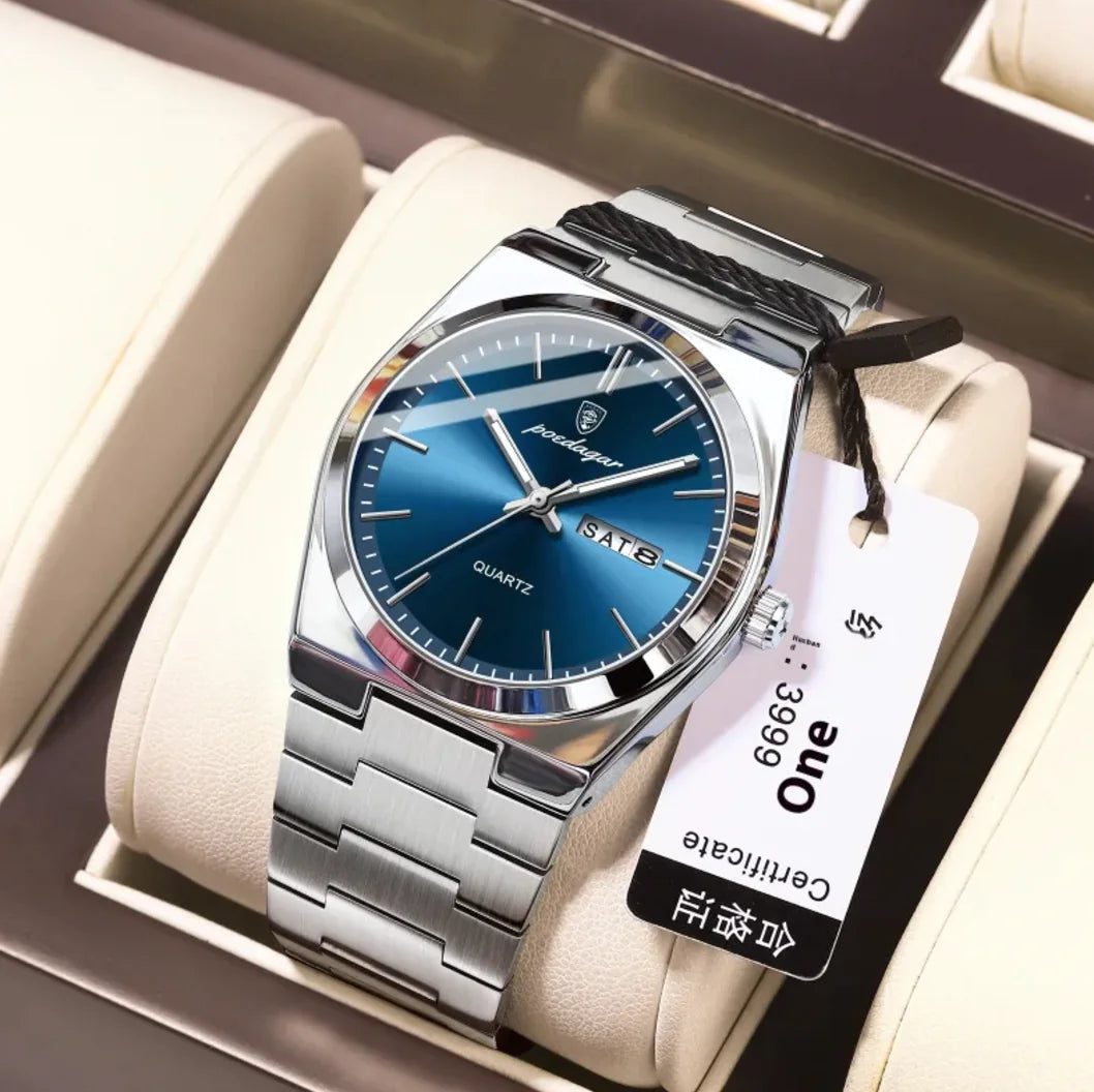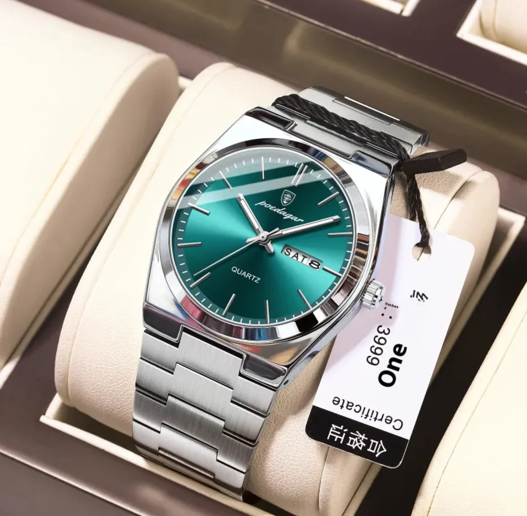 Sleek and lightweight men's watch with a waterproof design, features a luminous display for easy reading in low light, powered...