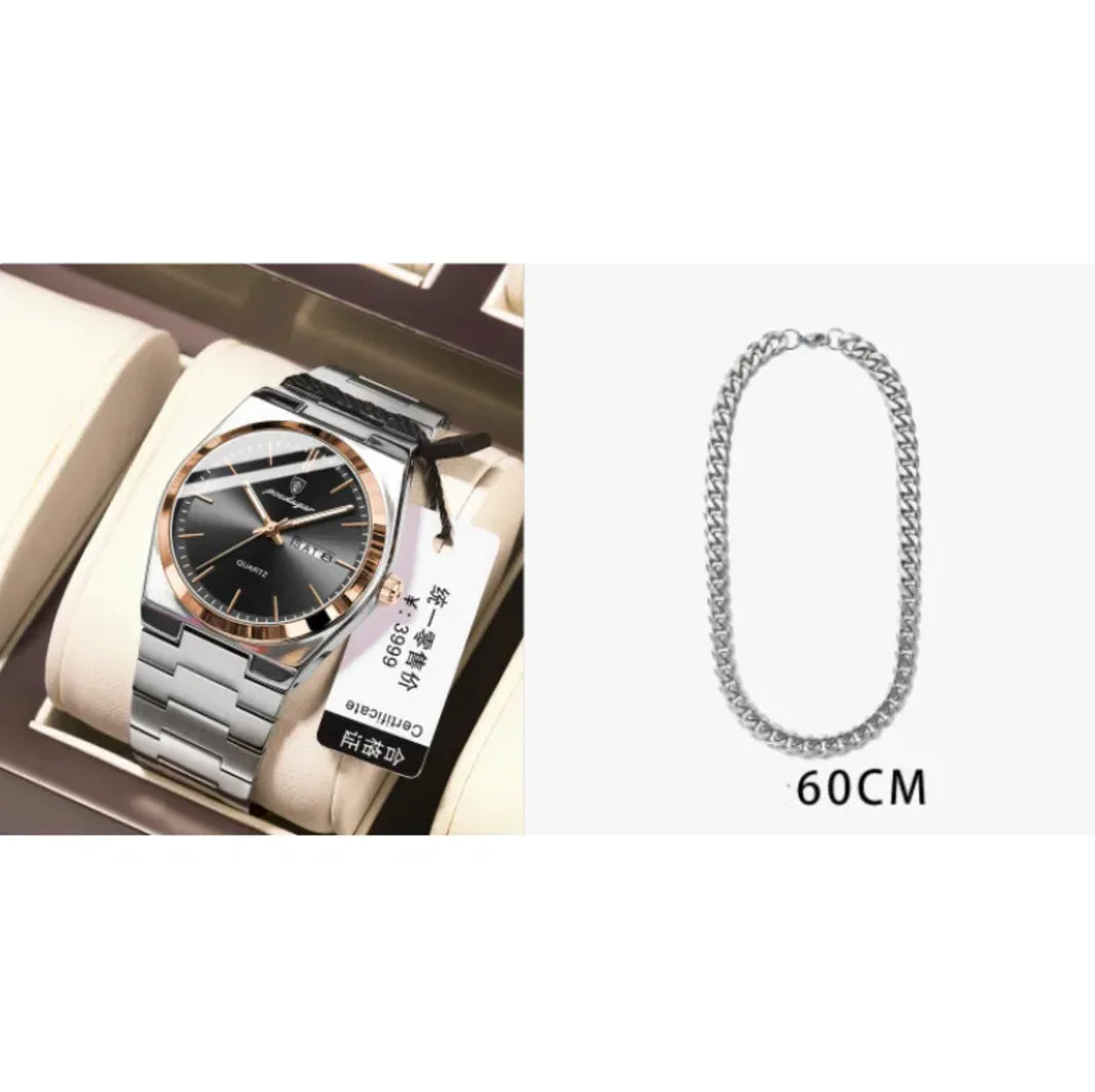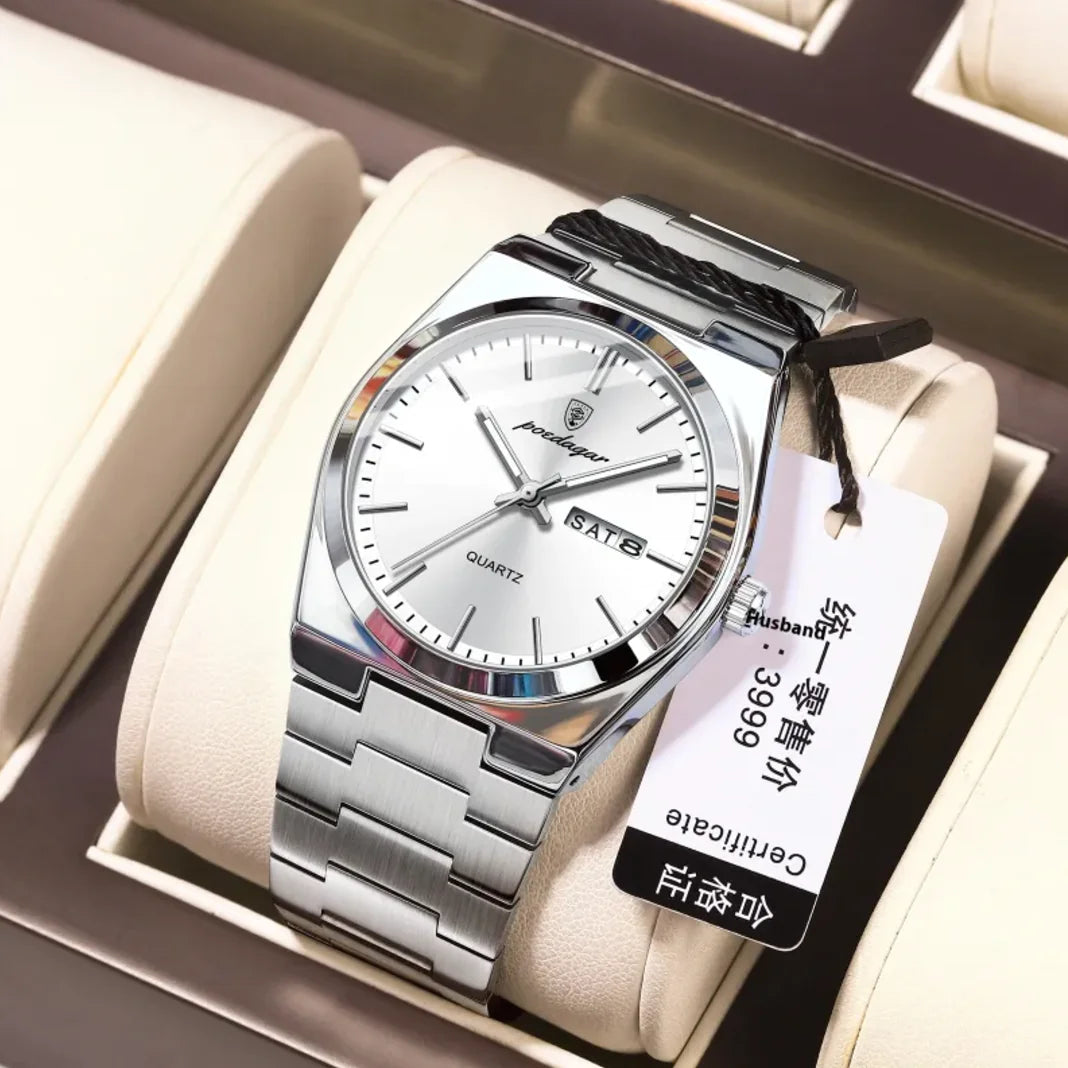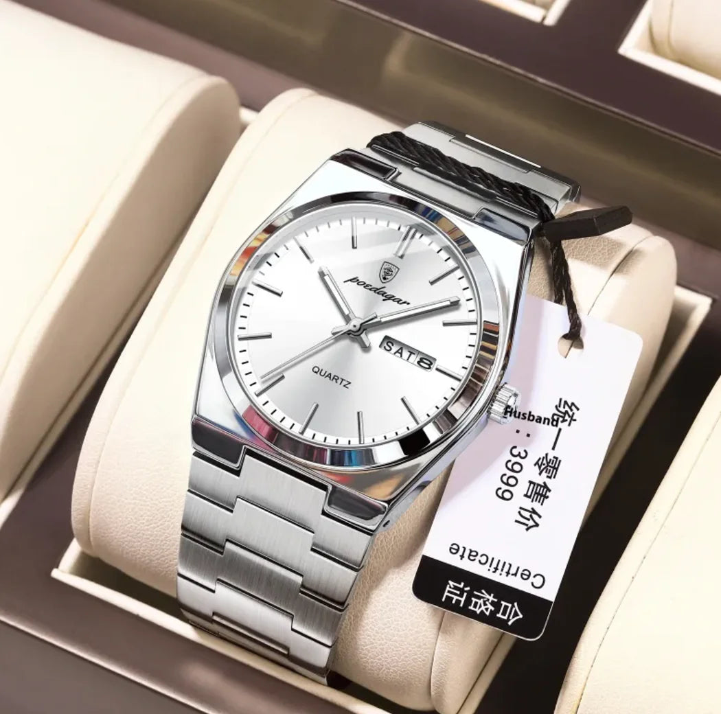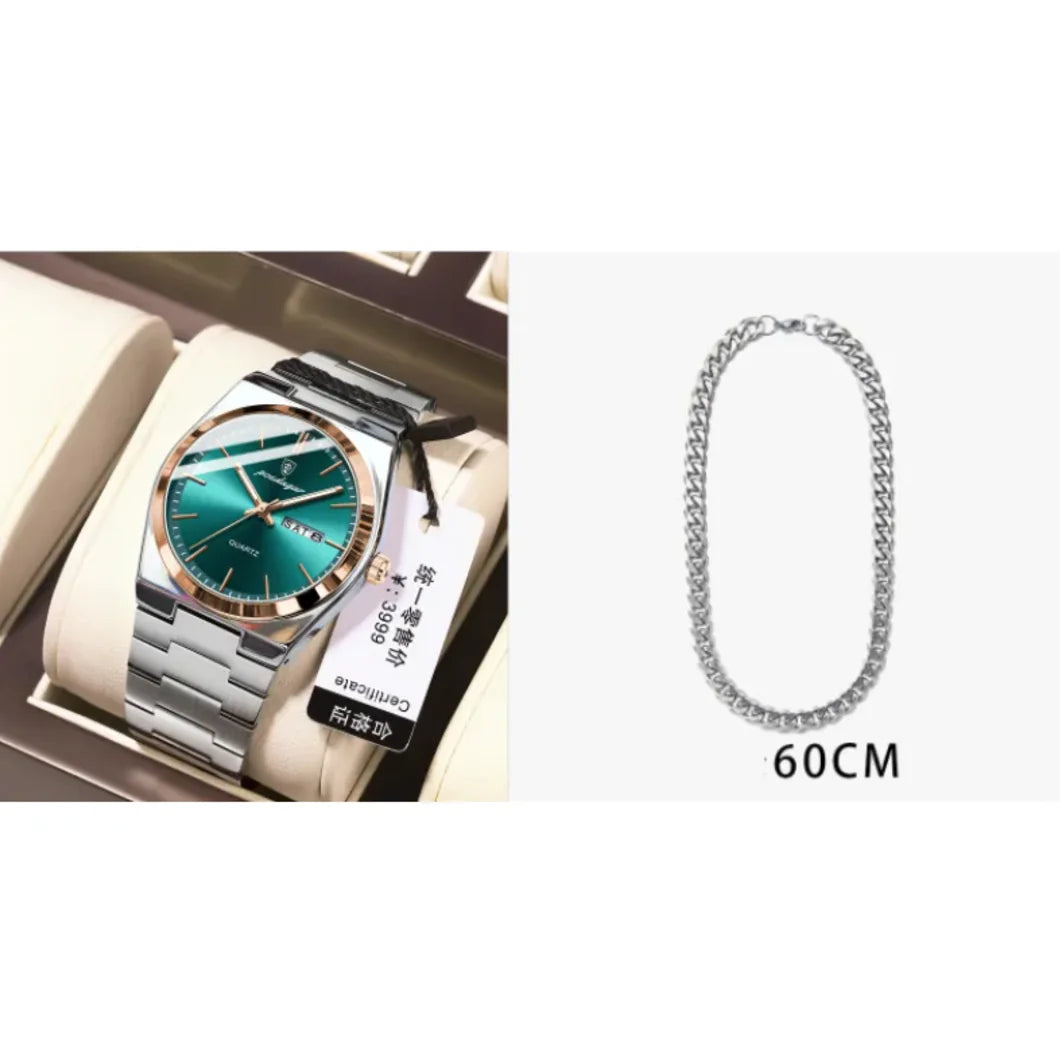 Sleek and lightweight men's watch with a waterproof design, features a luminous display for easy reading in low light, powered...