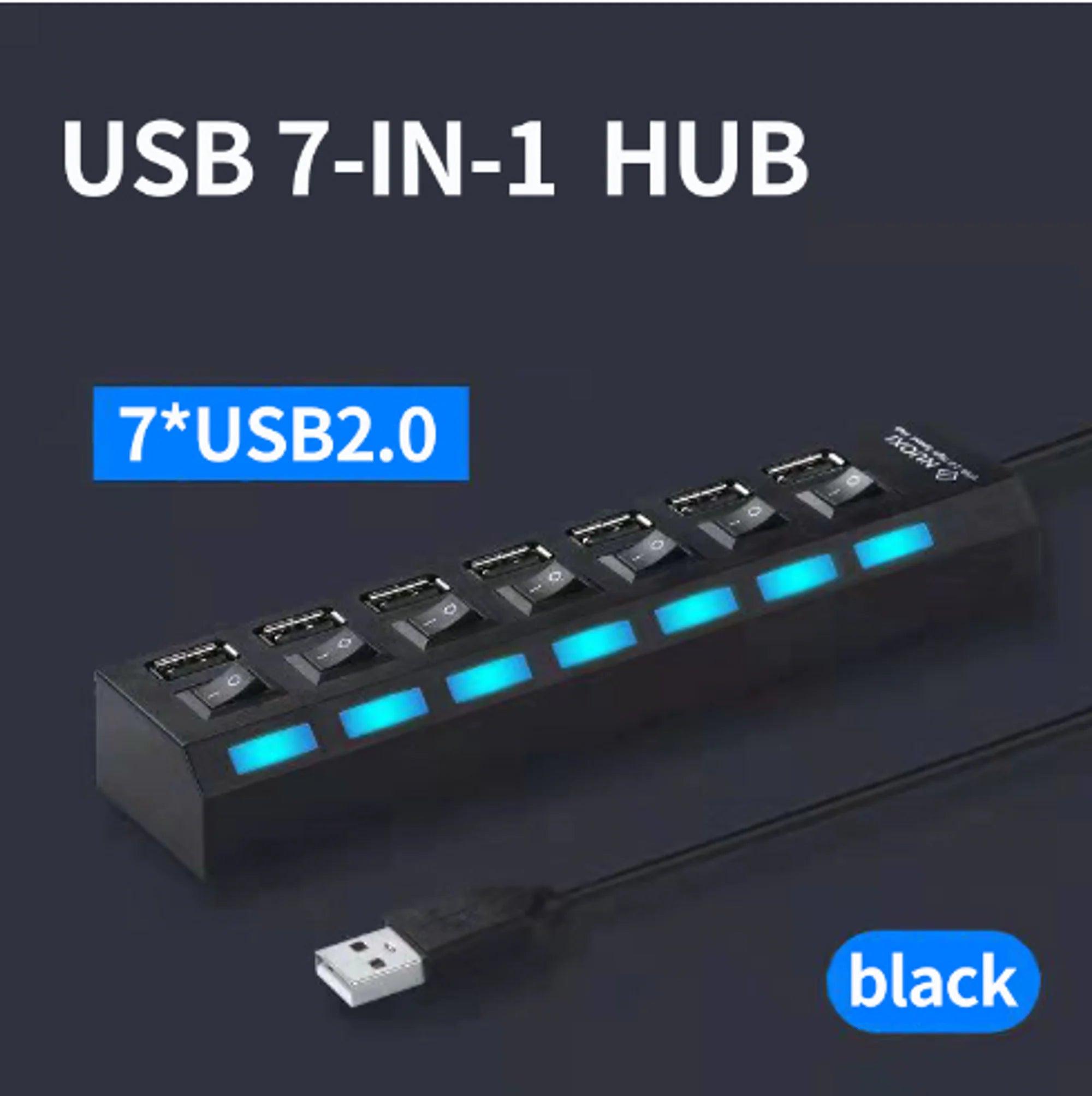 Introducing our 7-Port USB Hub – your ultimate solution for expanding your connectivity and protecting your devices with ease!