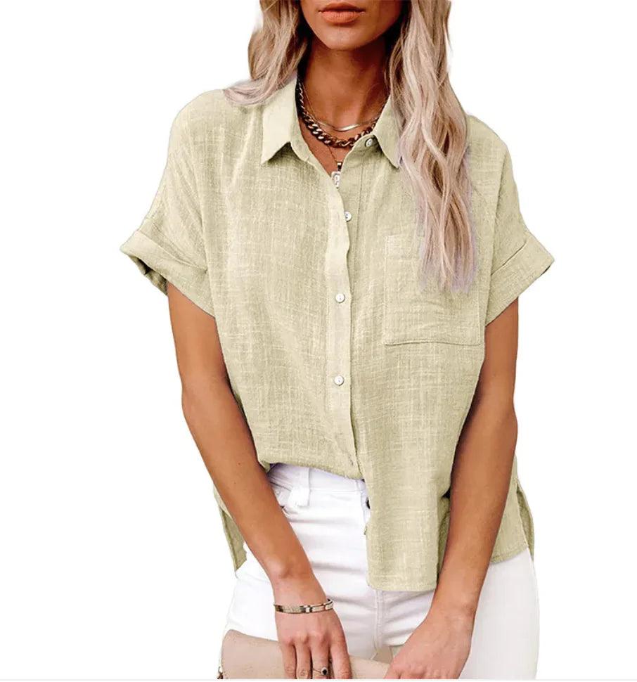 Women's Casual Cotton Linen Short-Sleeve Shirt with Pockets